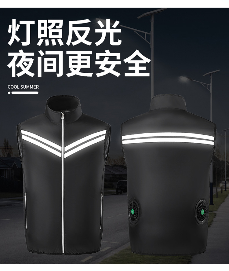 Wow クロスボーダーエアコンスーツノースリーブベスト夏反射ストリップ作業服ベストメンズ屋外冷凍冷却ファンスーツ