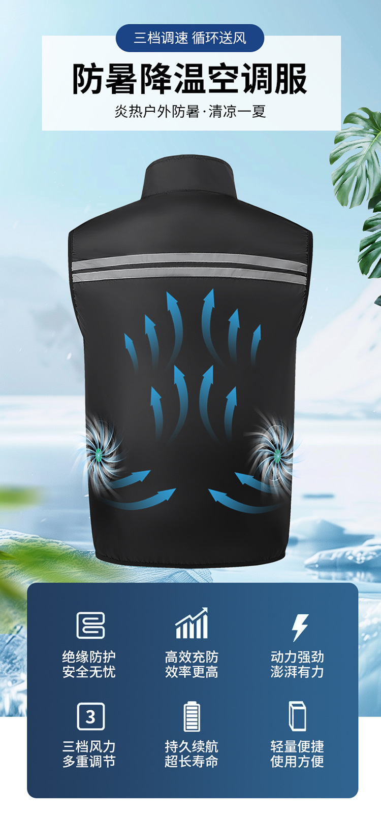 夏の温度を下げる反射バー馬甲ファン付き服エアコン服充電ベスト冷凍作業服男性応急