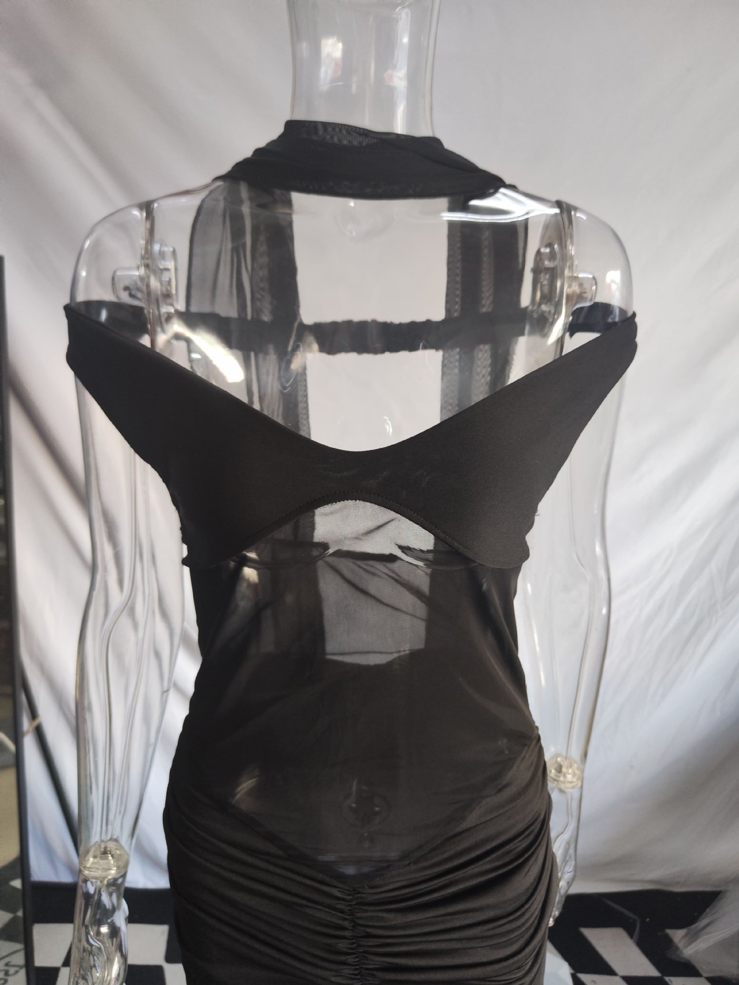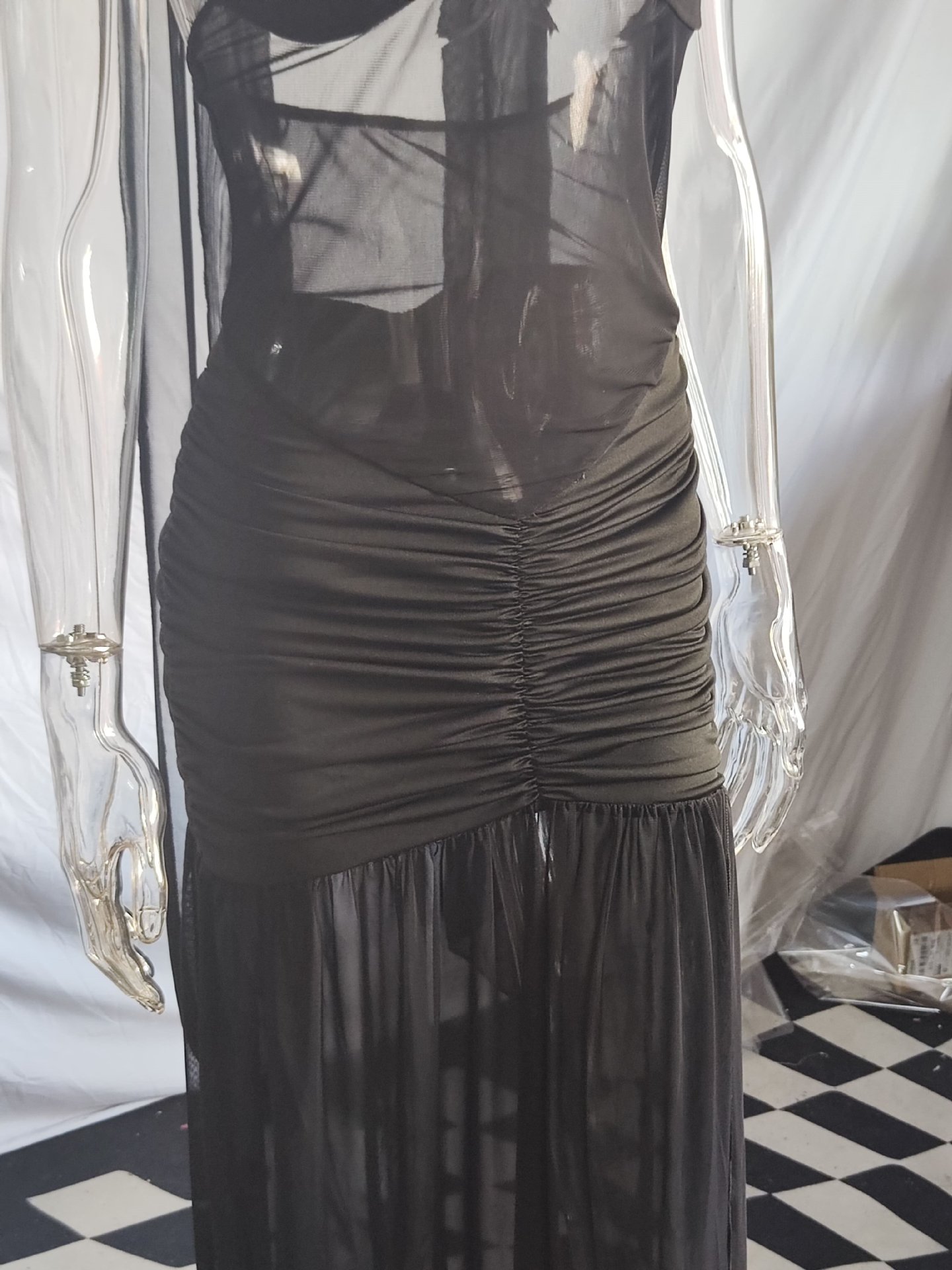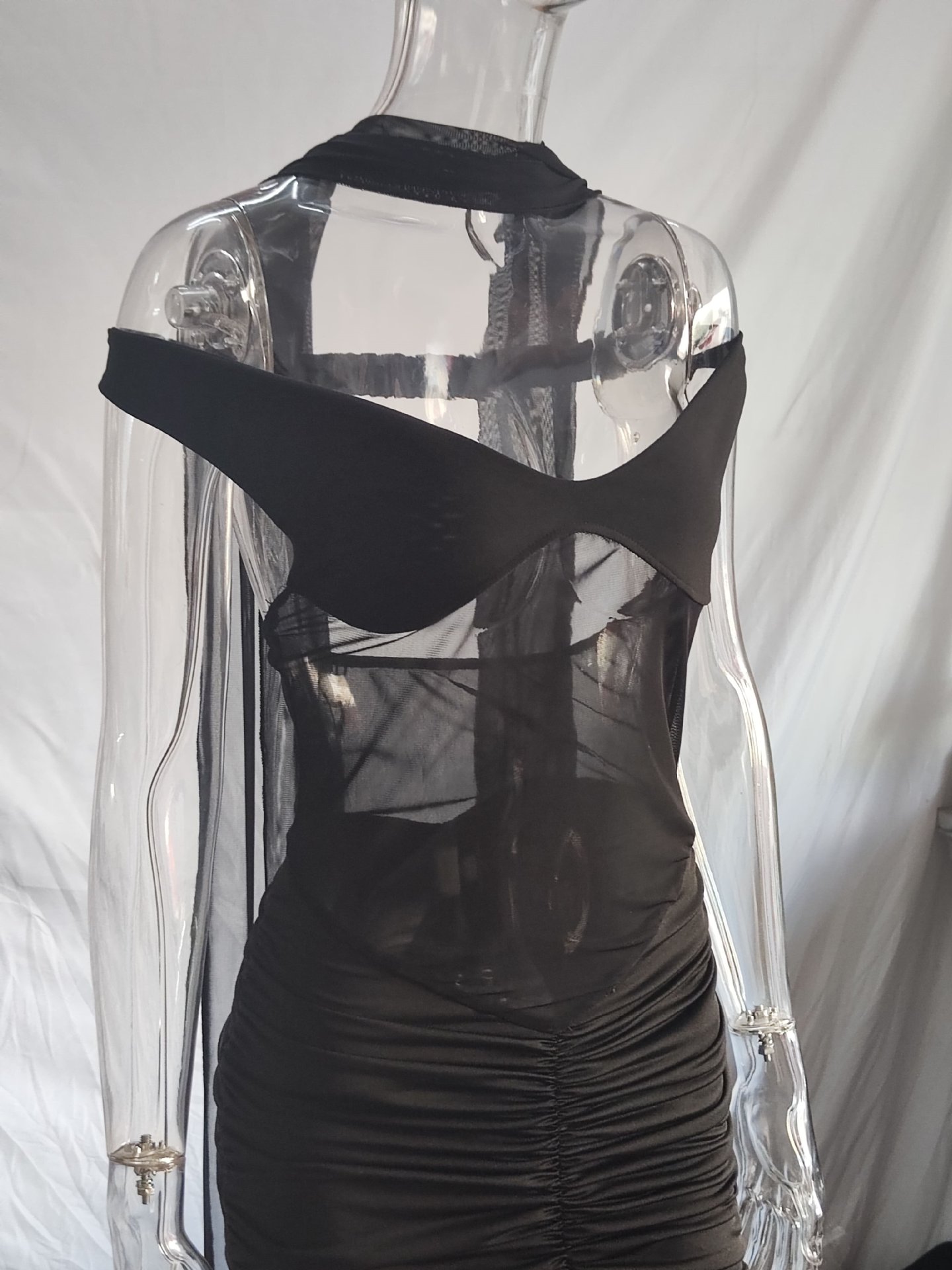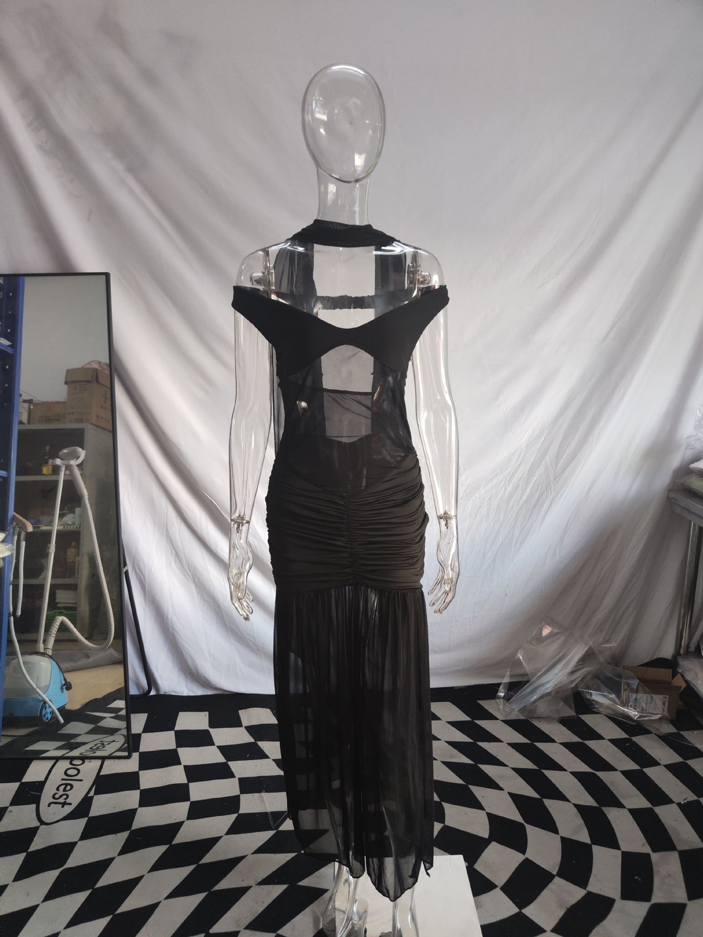 2025欧米の国境を越えた肩のしわが腰を収めて肩のネットの女性のセクシーな長いスカートを透視します。