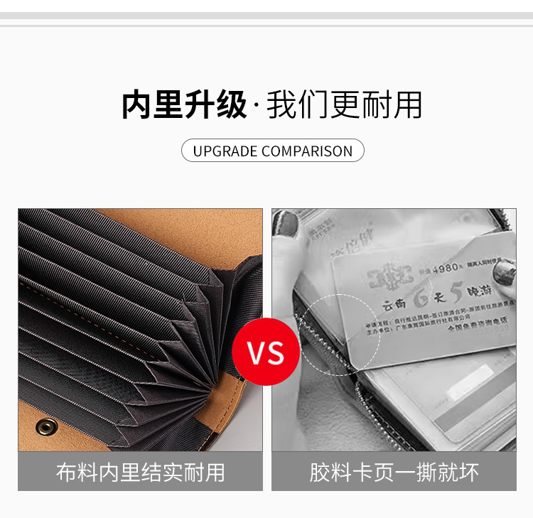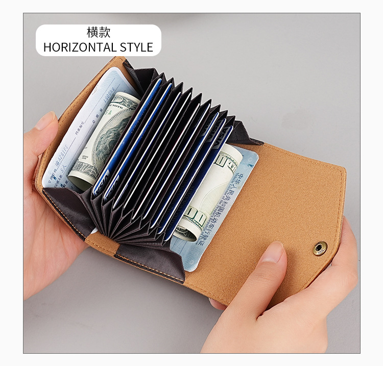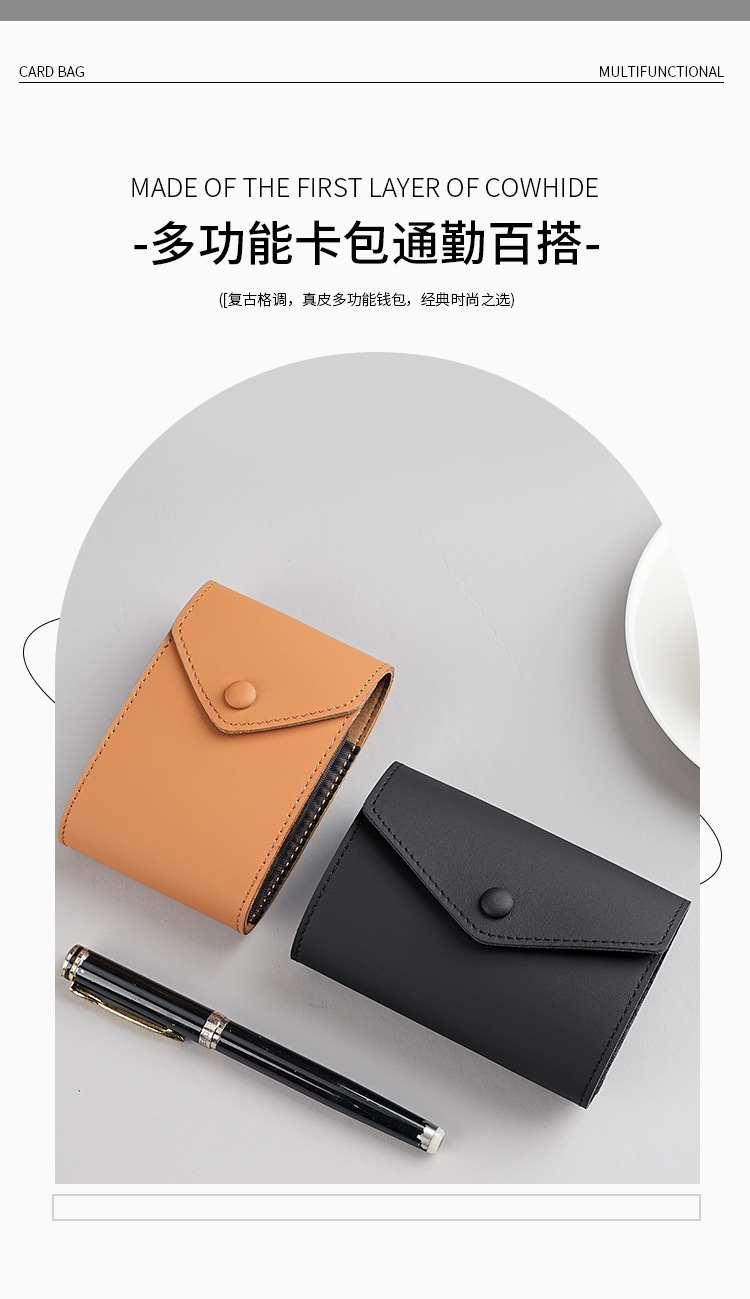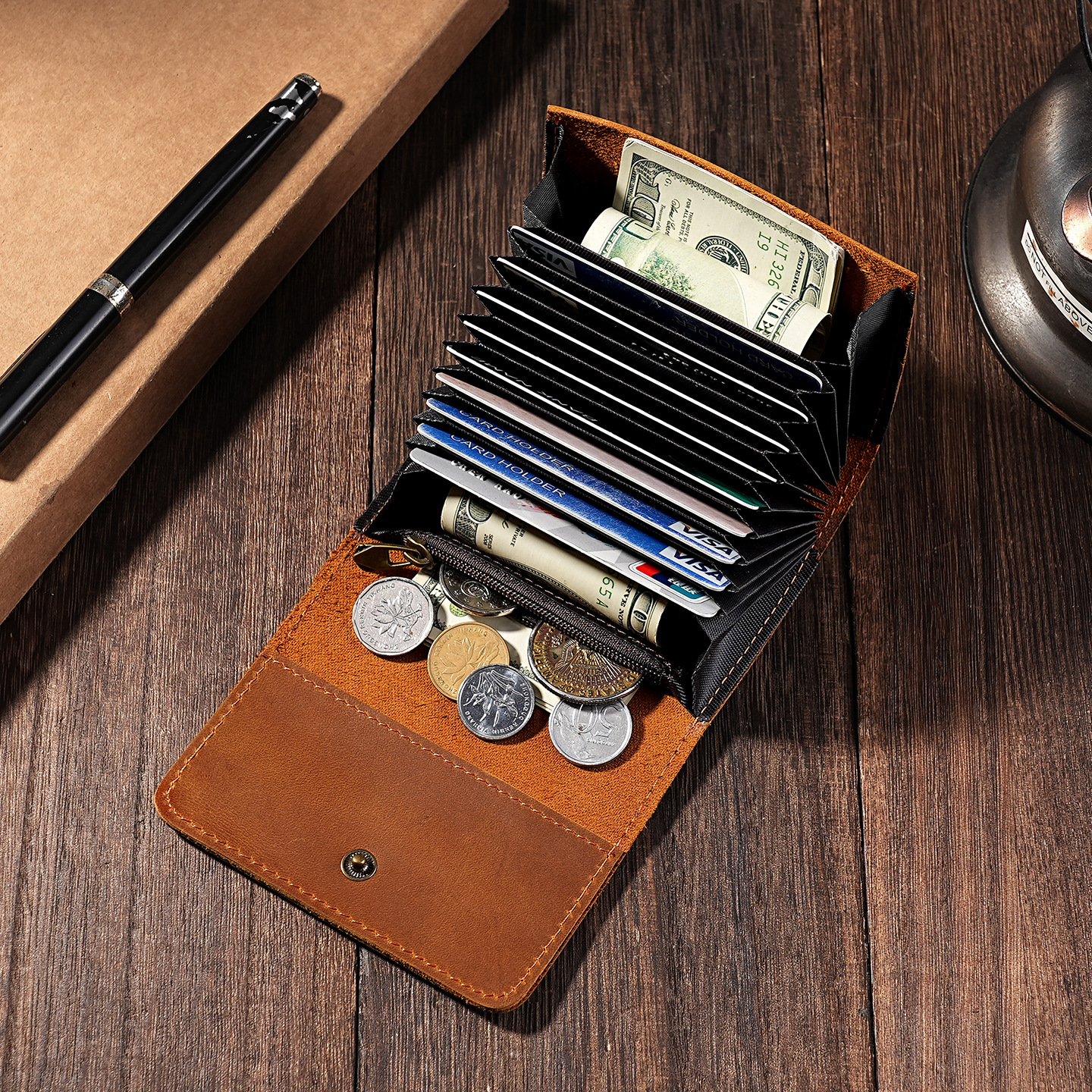 复古风琴小卡包男头层疯马皮小巧卡片夹含拉链隔层零钱卡包真皮女