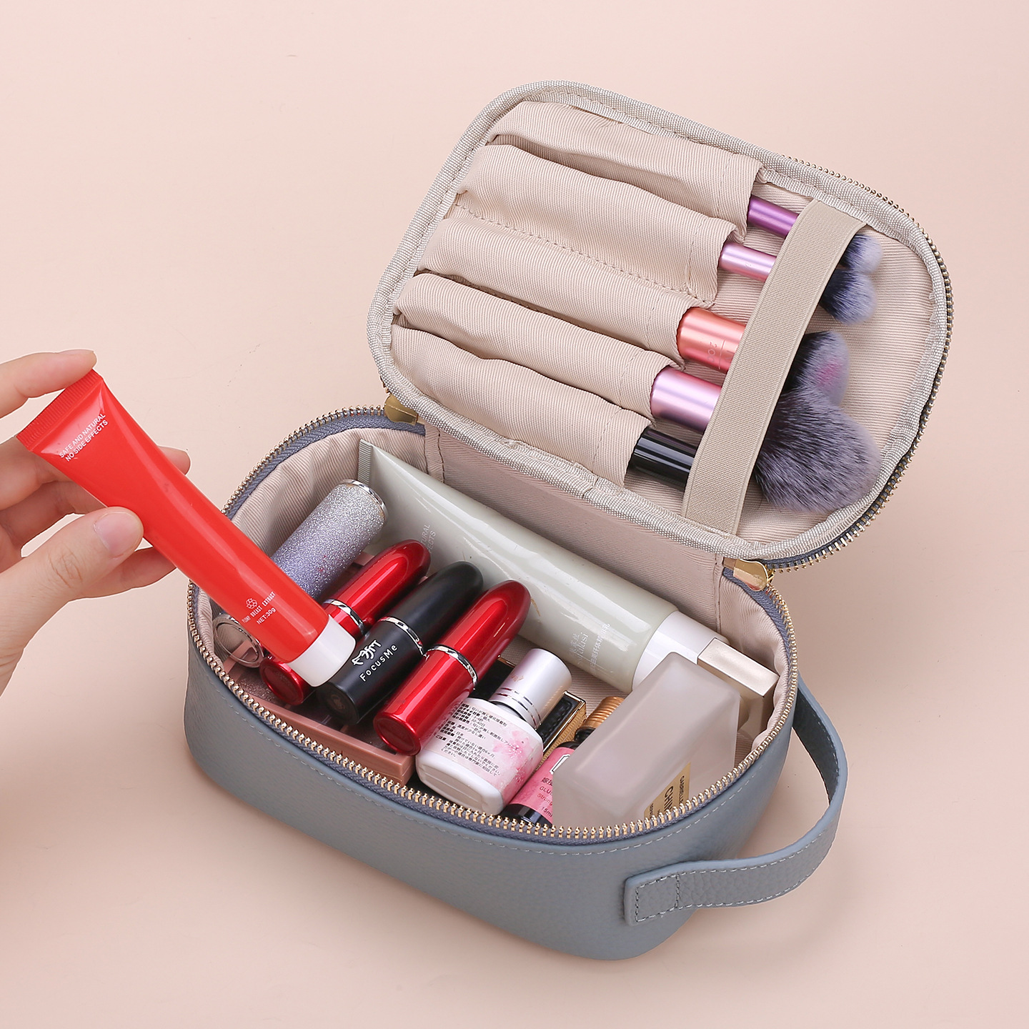 荔枝纹头层牛皮化妆包女士护肤品收纳包真皮洗漱包户外便携旅行