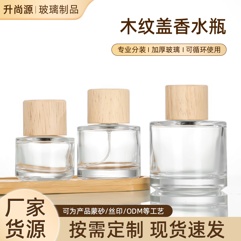 円筒形香水瓶、木製蓋、ファインミストガラス瓶、マルチ仕様香水サンプルボトル、卸売在庫あり