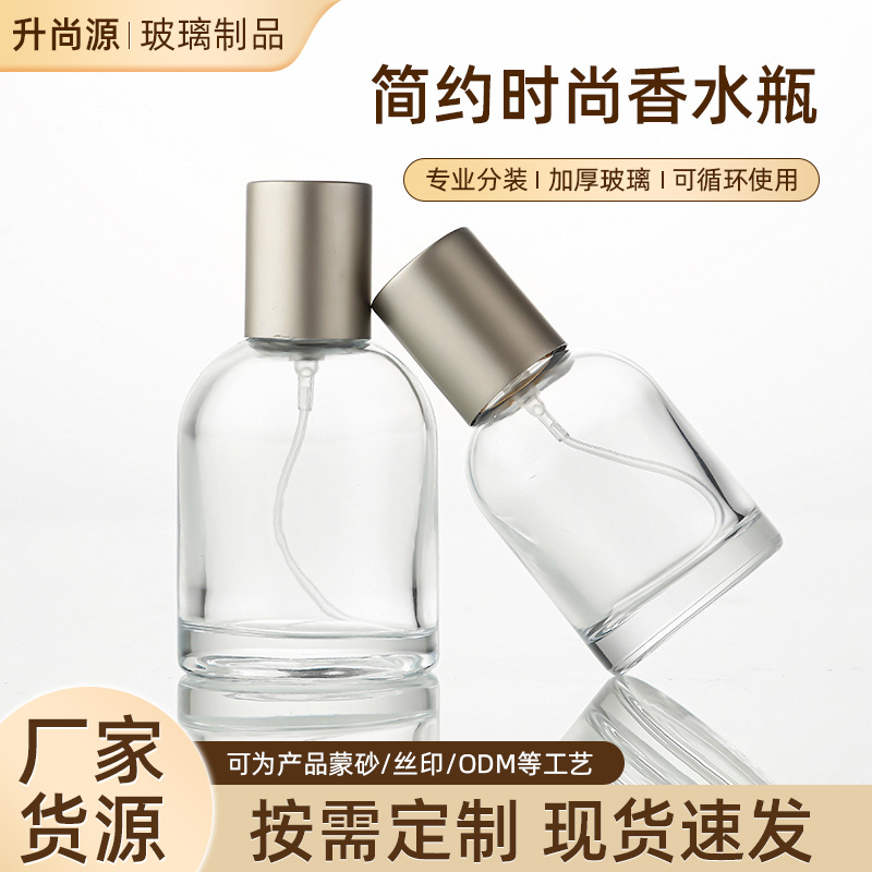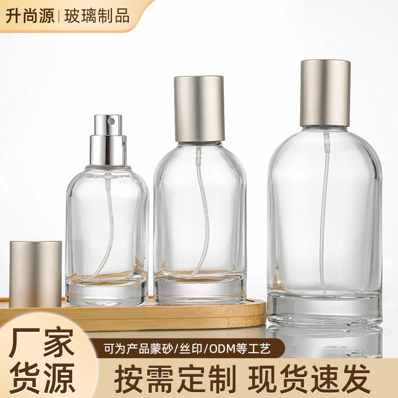 カスタマイズされた卸売ラウンド香水詰め替えボトル繊細なスプレープレスガラスボトル透明なガラスの質感バヨネット厚い底