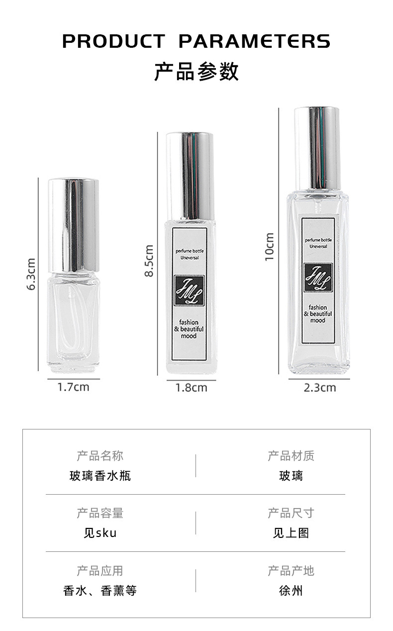 メーカーは小容量の10ml香水瓶、細長い丸い四角い香水瓶、プレススプレーボトル、空瓶を供給しています。