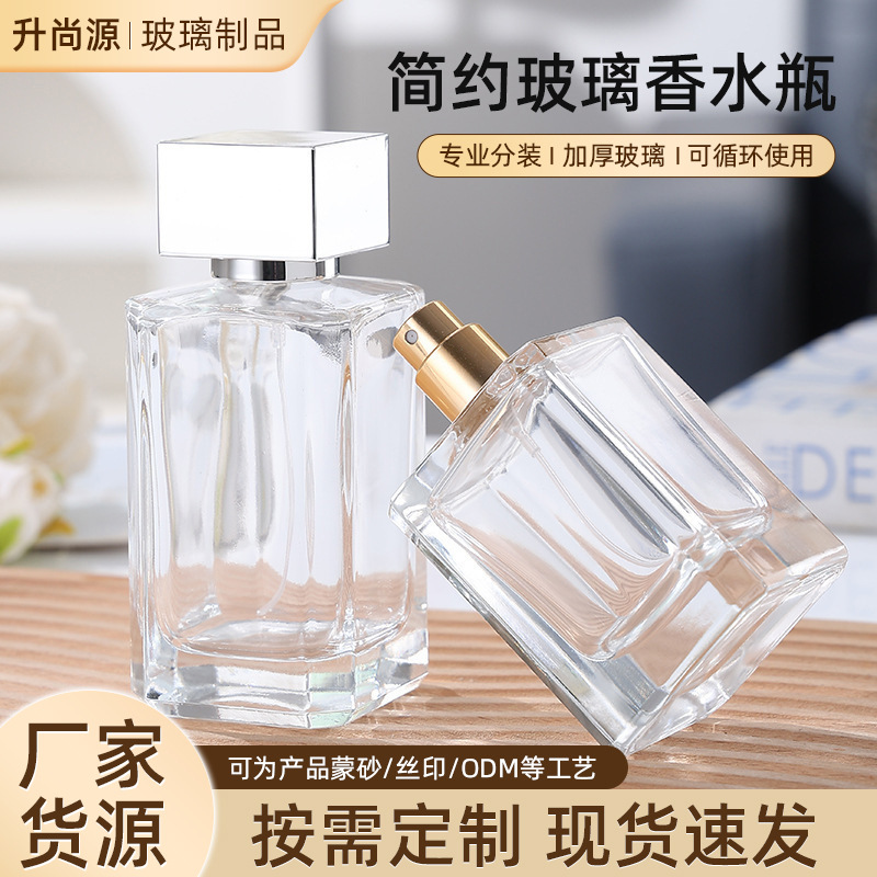 シンプルな四角いガラス香水瓶化粧品詰め替えボトル香水トナープレススプレーボトルアルミノズル