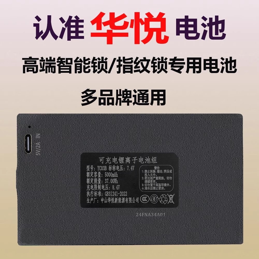 Huayue オリジナル YC04B スマートドアロックバッテリー指紋ロック充電式リチウム電池パスワードロック 0307ACE バッテリー