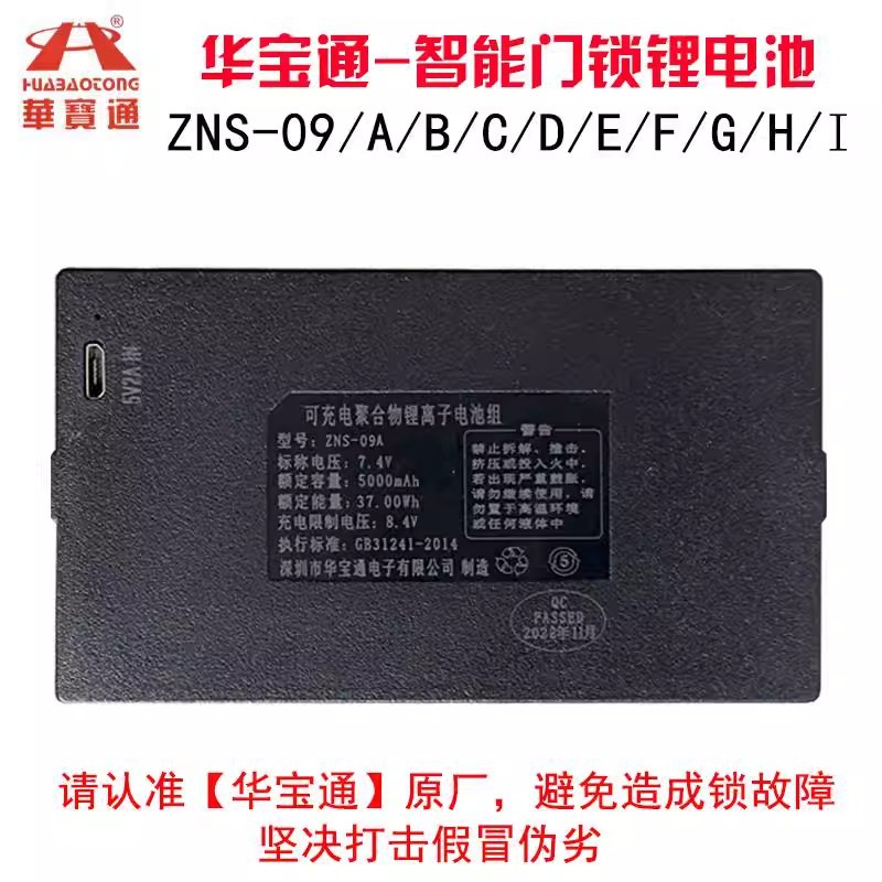华宝通指纹锁电池智能门锁密码锁电子锁专用锂电池可充电zns-09b1