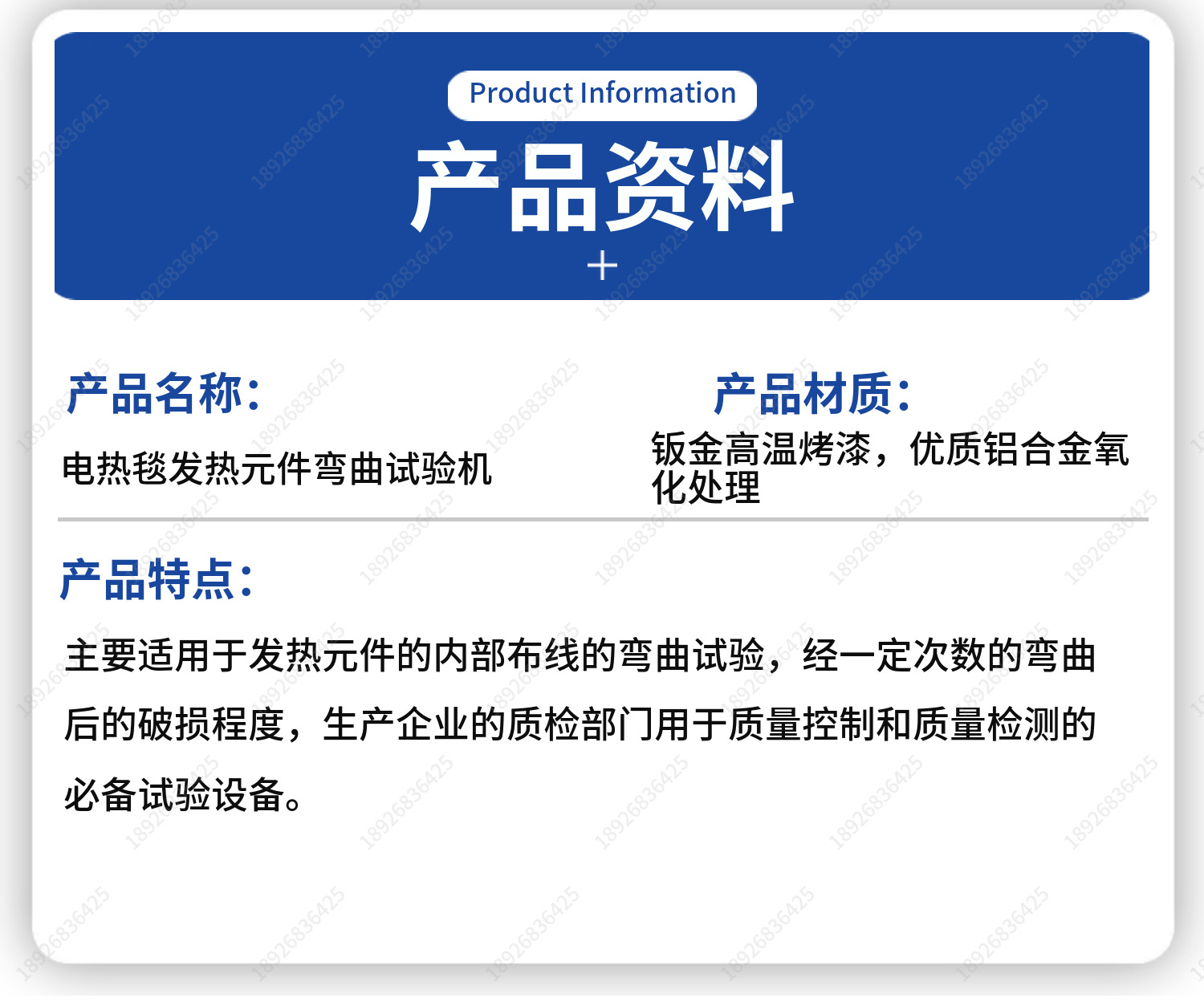 電気毛布加熱部品曲げ振動試験機加熱線往復寿命試験加熱線老化