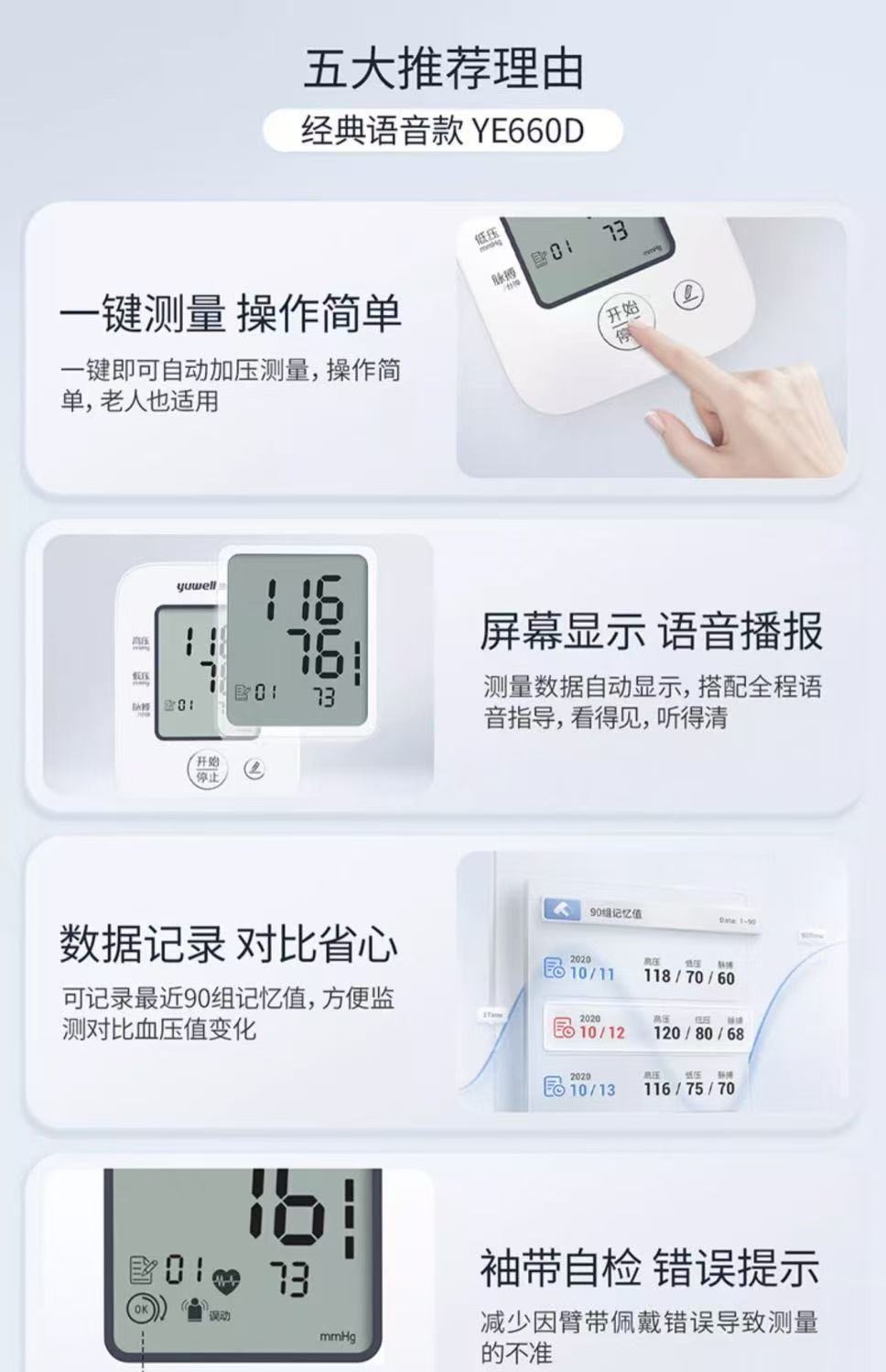 魚躍ye660d電子血圧計上腕式音声血圧測定器家庭用全自動知能測定器