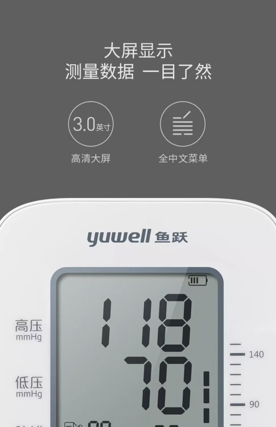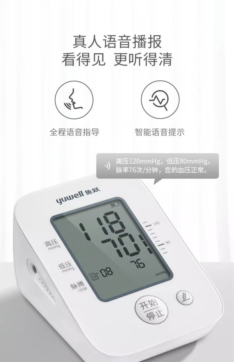 鱼跃医用上臂式电子血压计血压仪老人家用语音电子成人血压器