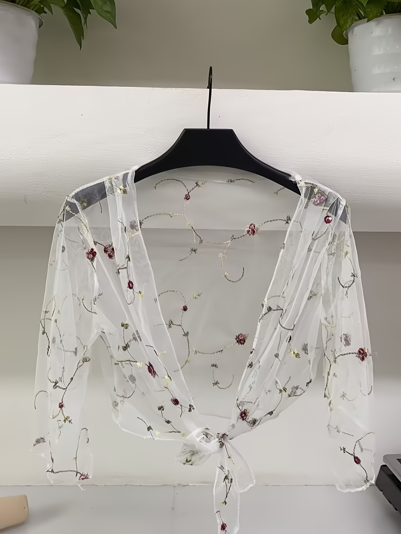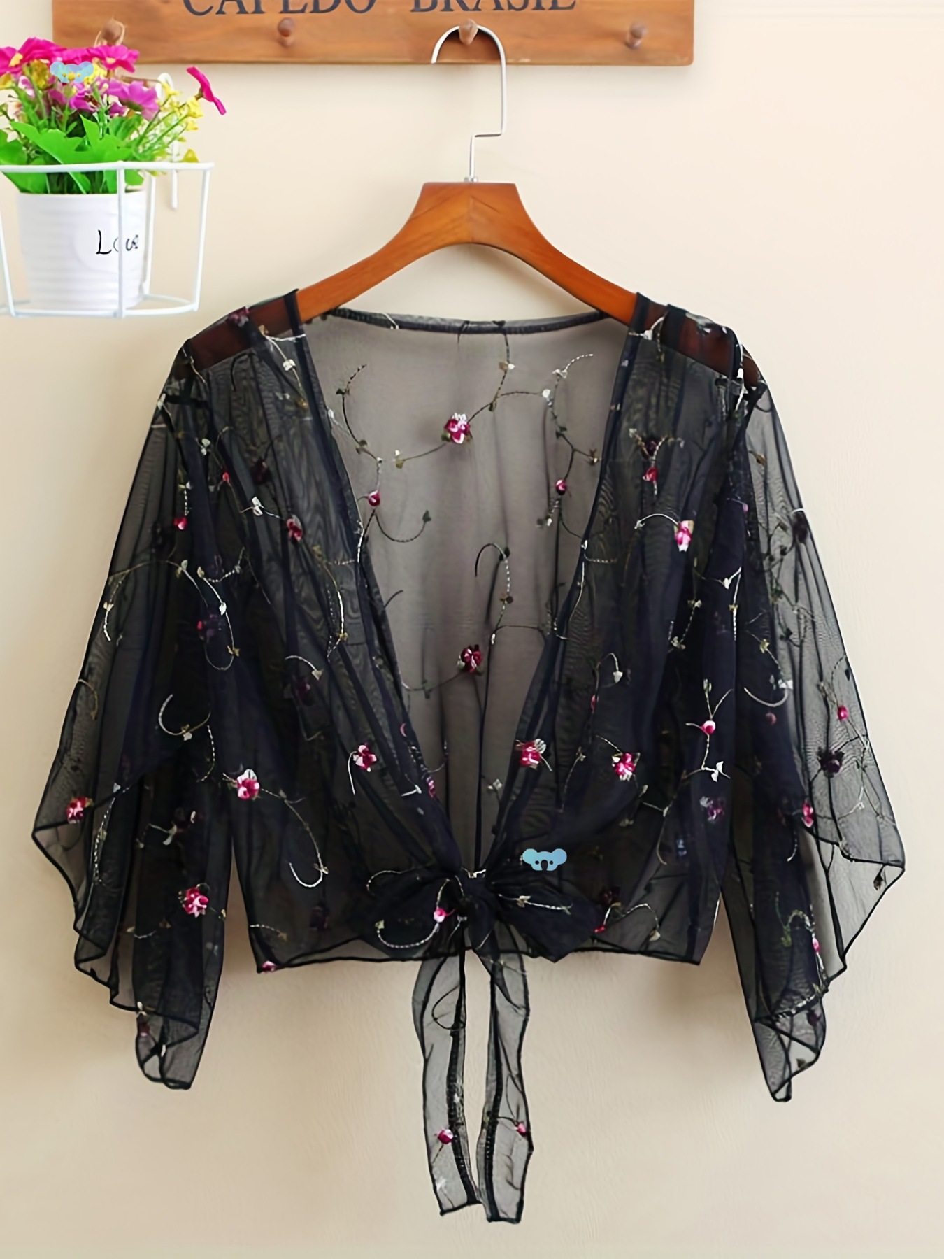 女性メッシュシアーカーディガン絶妙な花の刺繍ルーズ