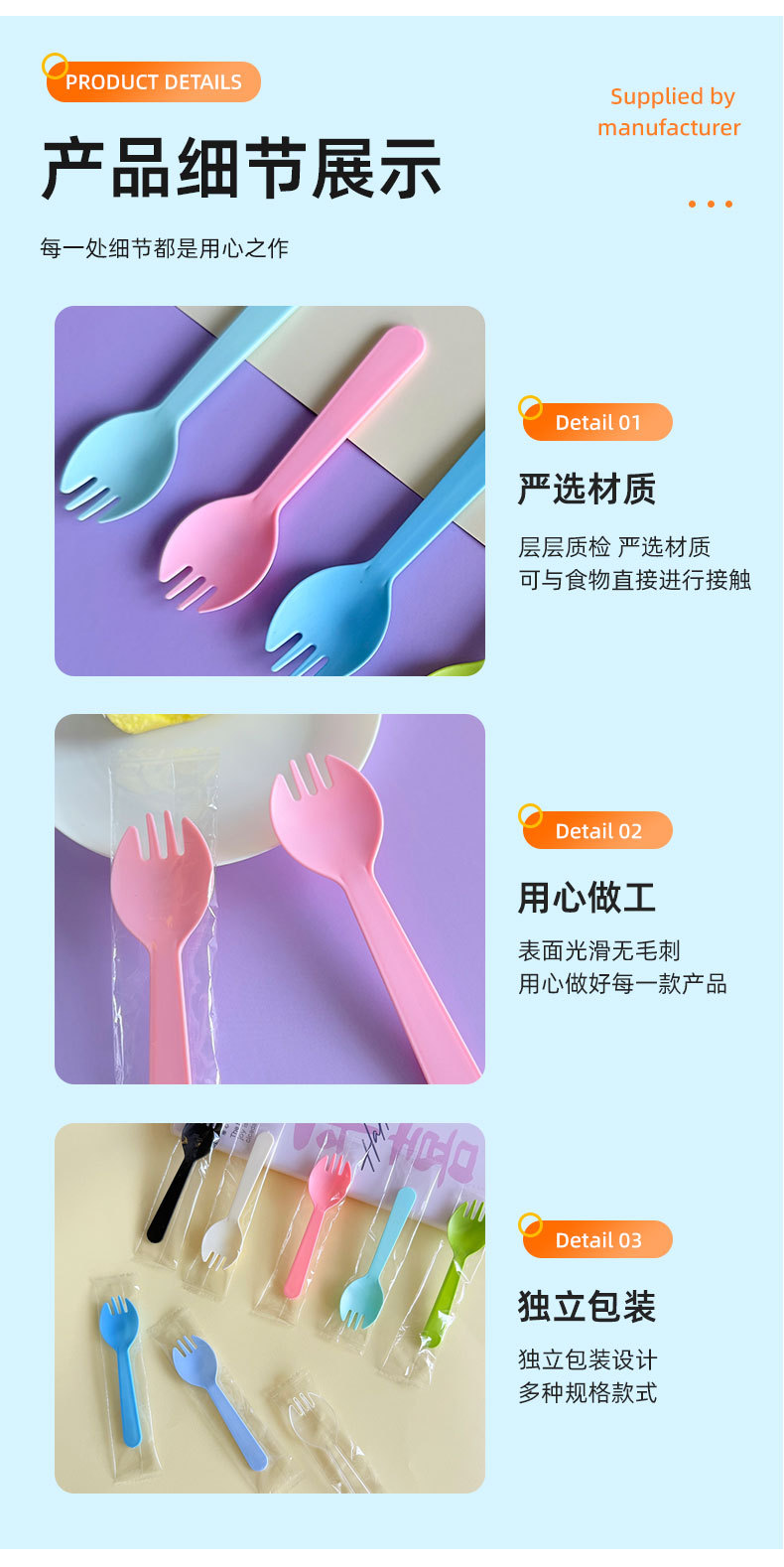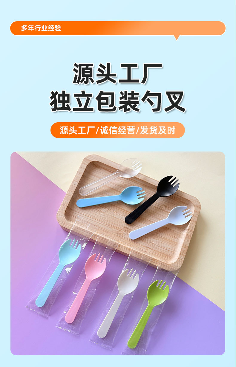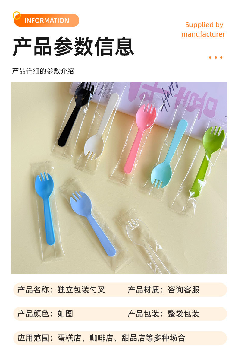 卸売プラスチックスプーンとフォークケーキサラダスプーンテイクアウト食器フルーツフォーク増粘独立包装使い捨てフォーク