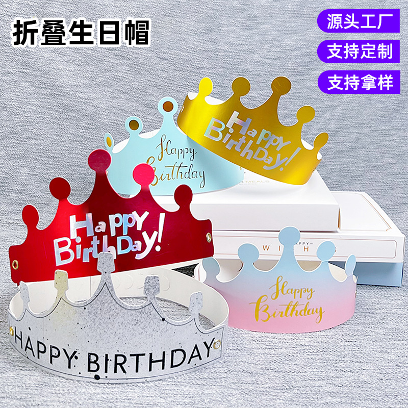 折りたたみ誕生日帽子インターネット有名人子供の最初の誕生日パーティー調節可能な誕生日帽子紙ゴールデンクラウン誕生日帽子