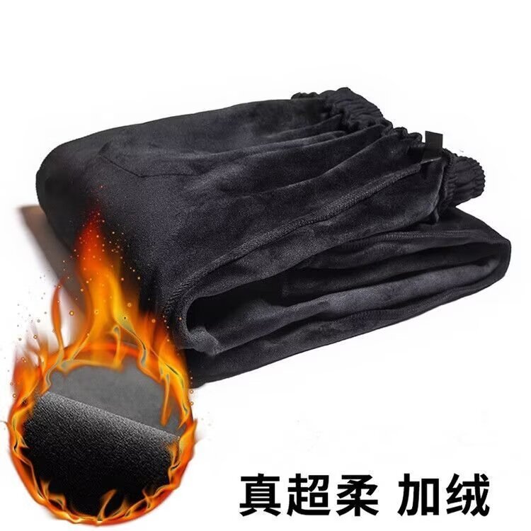 秋冬の男性用グラフェンプラスベルベットパンツ、新しいスタイルのラムベルベットプラスベルベット厚手のロングパンツ、トレンディなルーズスウェットパンツ、多用途