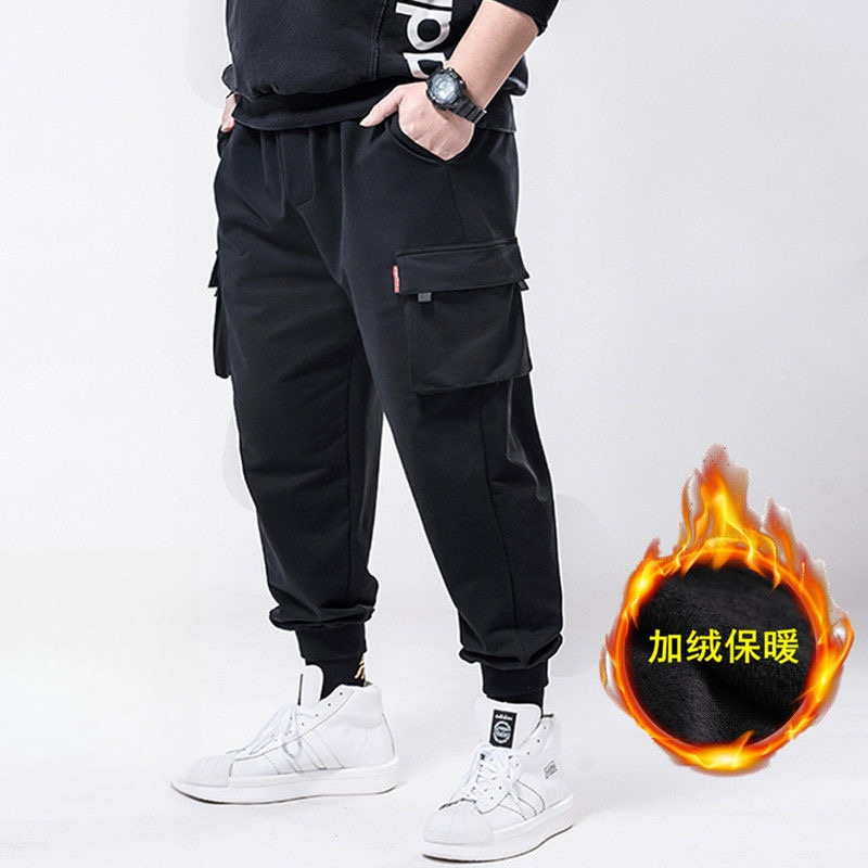 秋冬オーバーオールメンズベルベット厚みのあるヨーロッパとアメリカンスタイルの大きいサイズのルーズレギンススポーツパンツマルチポケットカジュアルパンツ男性用