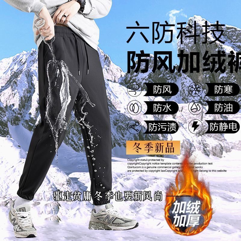 ベルベット防風パンツ、秋冬スポーツパンツ、6つの防寒性と暖かいルーズパンツ、男性用厚手の防寒カジュアルロングパンツ