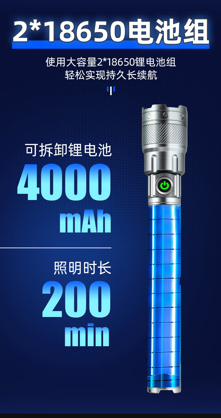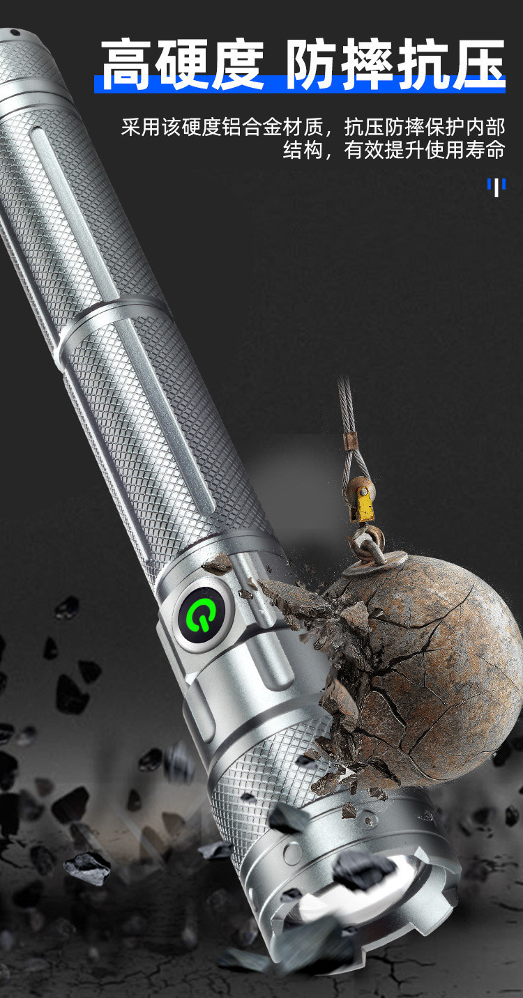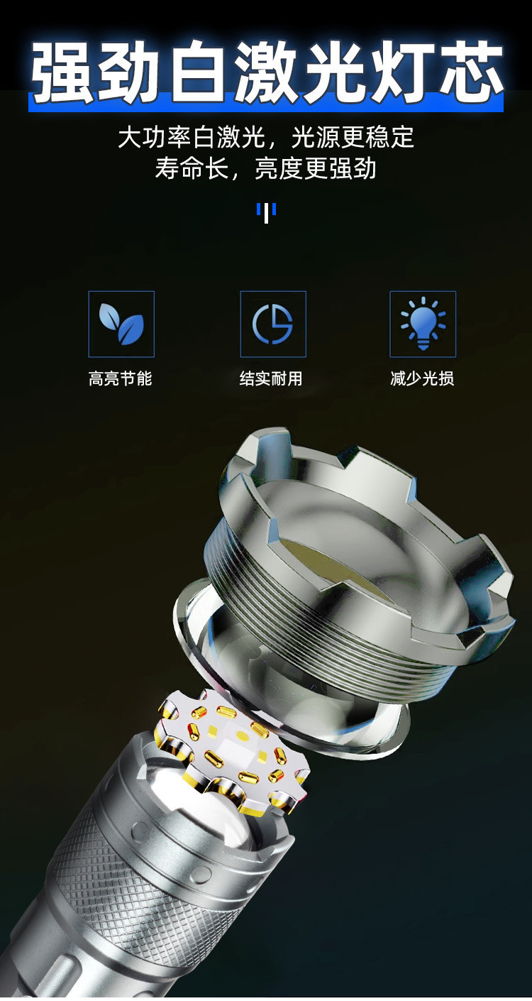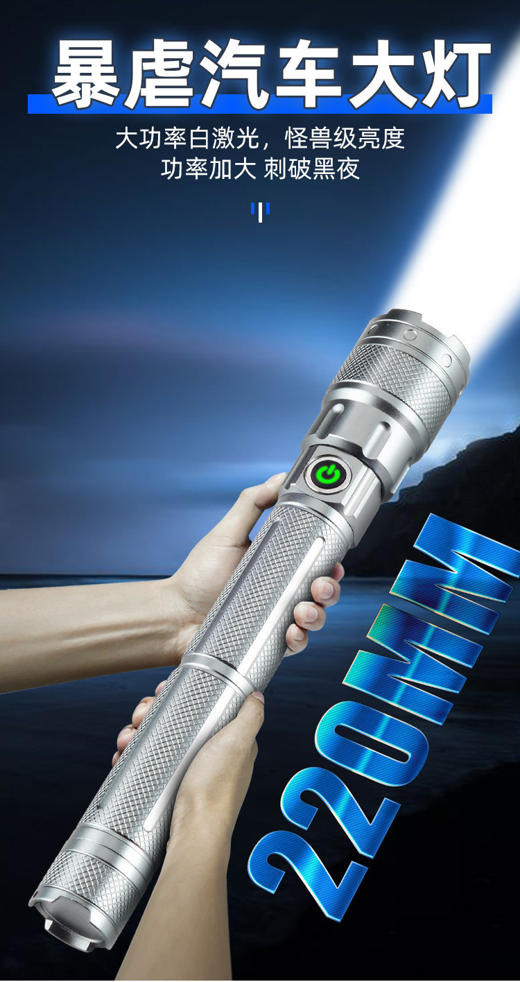[アルミニウム合金金属] 高輝度ホワイトレーザー多機能車キャンプ緊急屋外強力な光懐中電灯