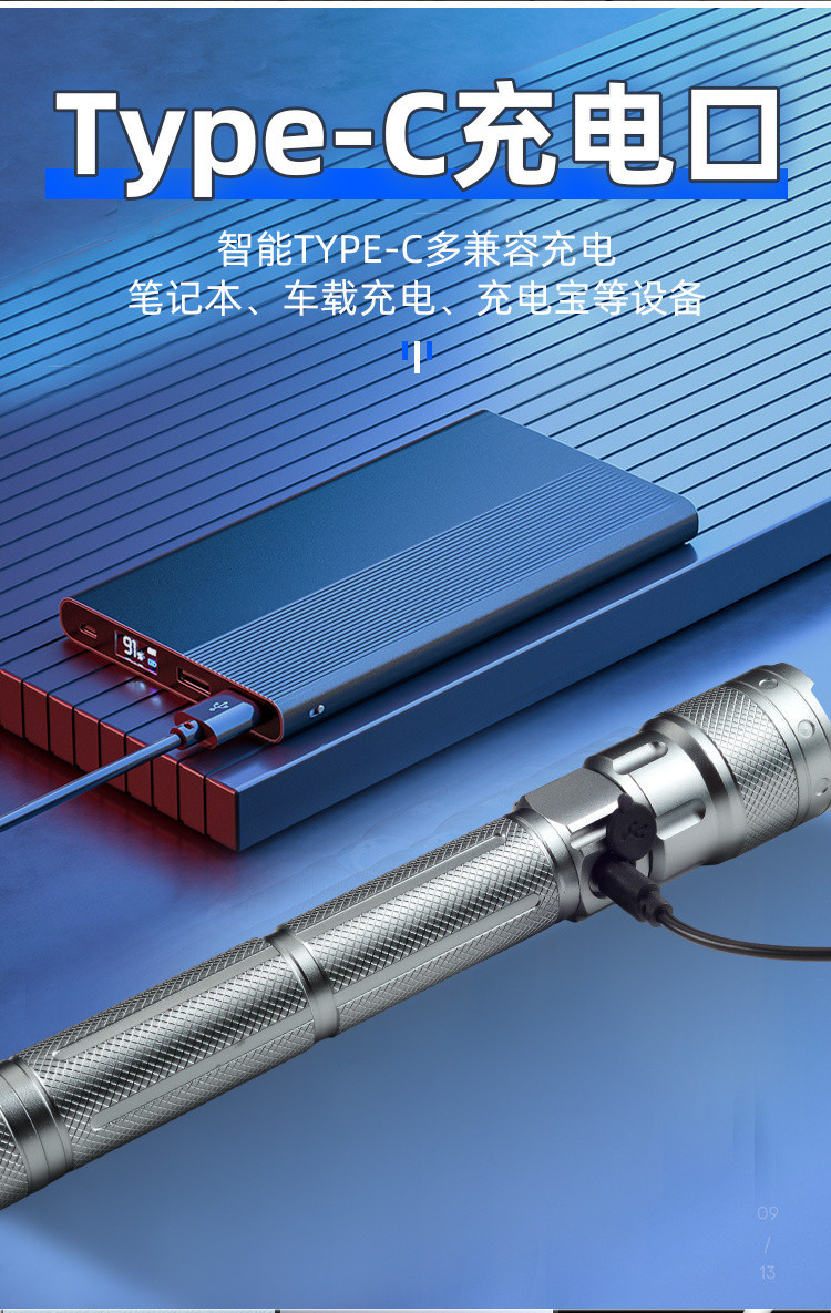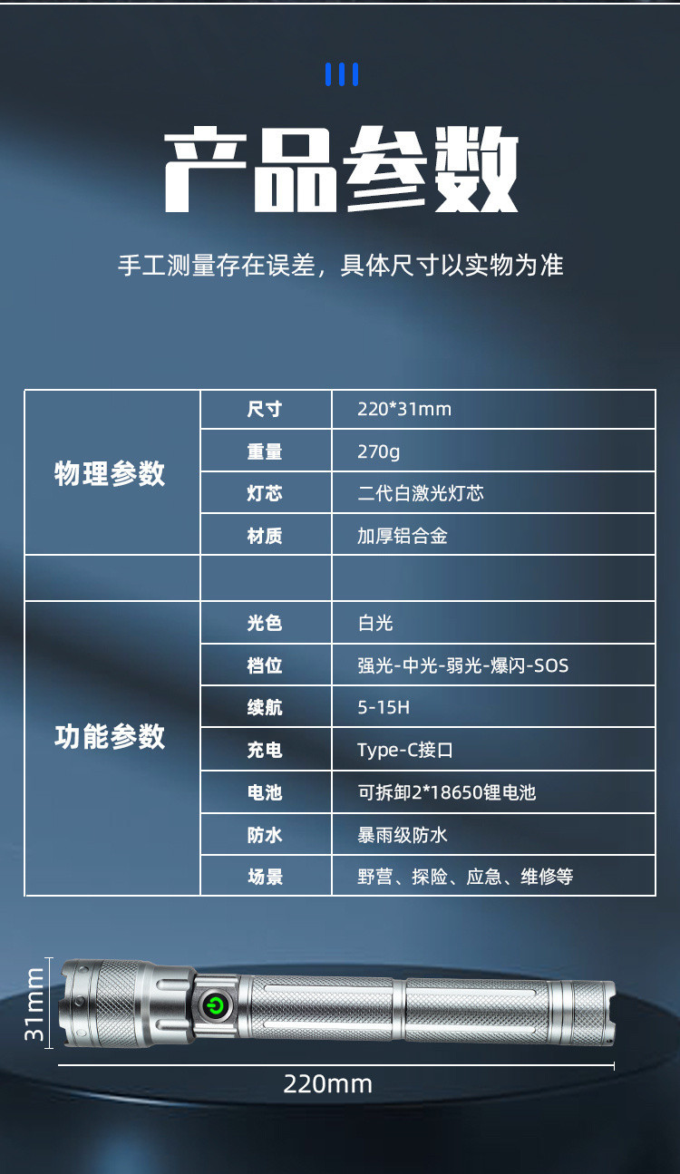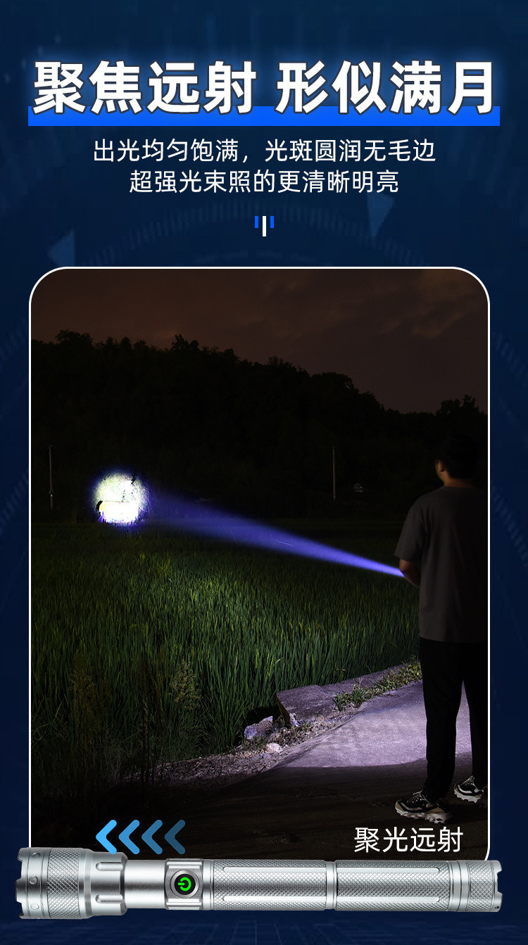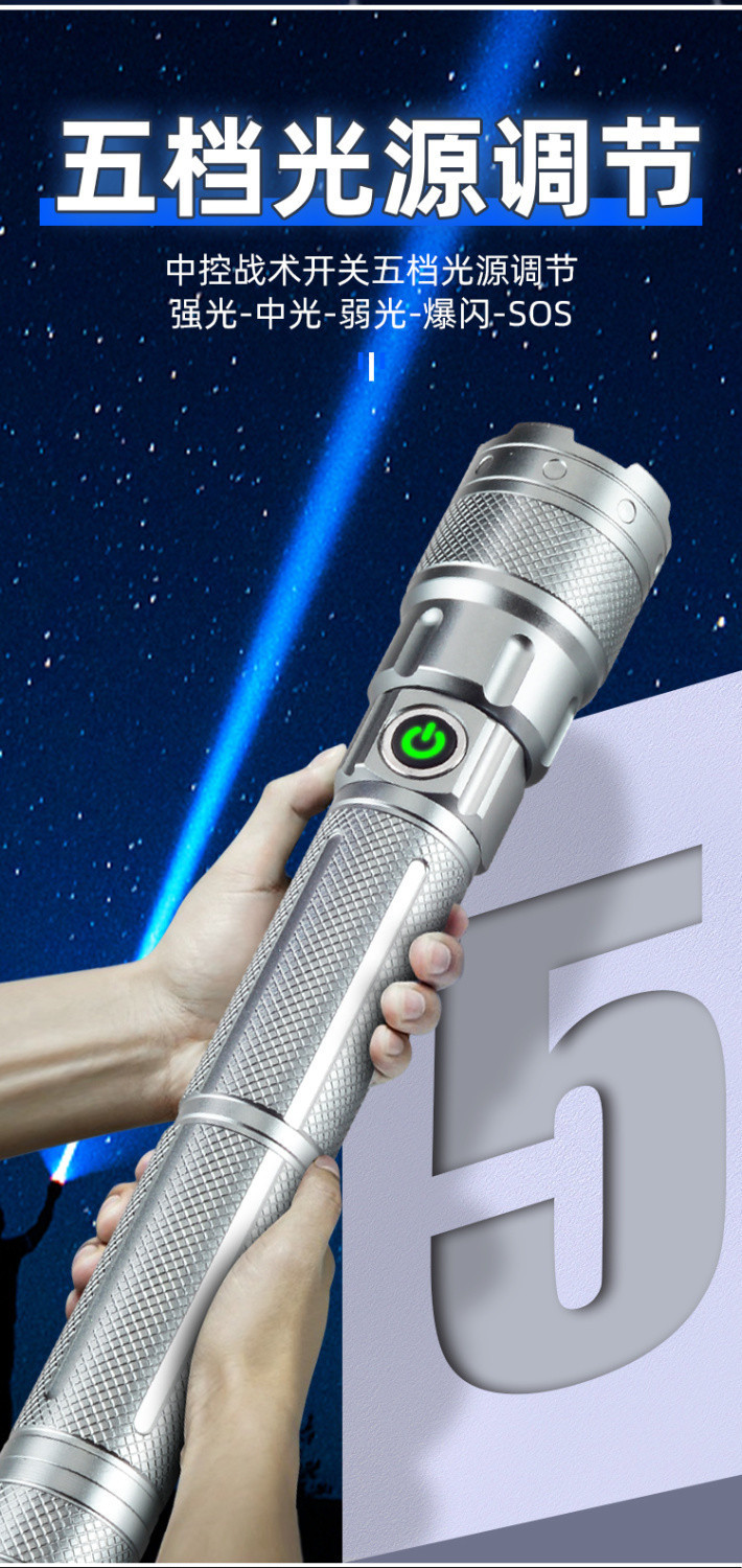 [アルミニウム合金金属] 高輝度ホワイトレーザー多機能車キャンプ緊急屋外強力な光懐中電灯