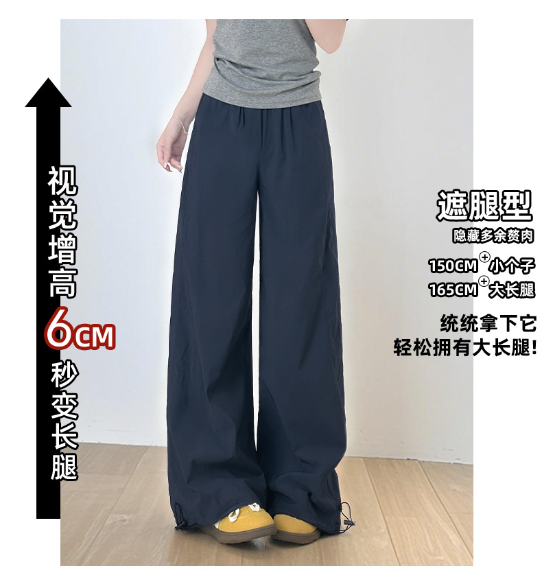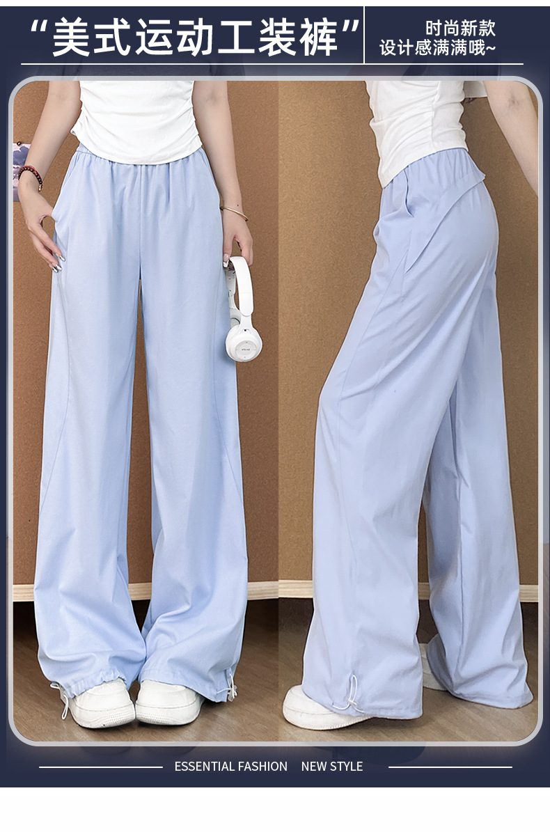 アメリカ風速乾スポーツワークパンツ レディース 2025秋冬新作 ハイウエスト ドレープ感 着痩せ効果 カジュアル ワイドパンツ 小柄さん向け