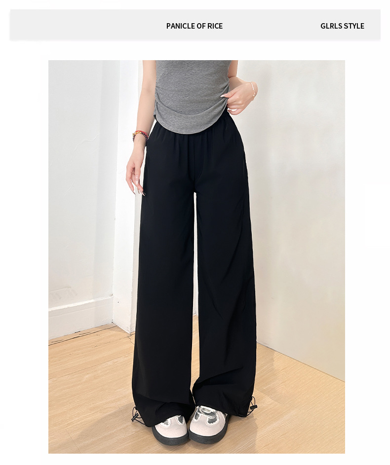 女性のためのグレーのオーバーオール夏薄いセクション 2025 新しいルーズストレートパンツアメリカンハイウエストワイドレッグ速乾性スウェットパンツ女性のための