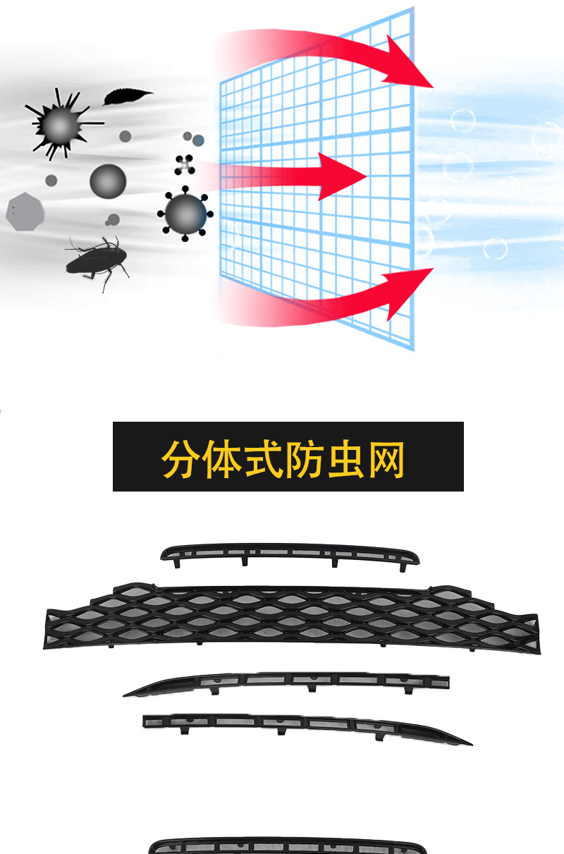 适用大众朗逸五百万版/新锐一体焊接汽车防虫网前脸中网专用配件