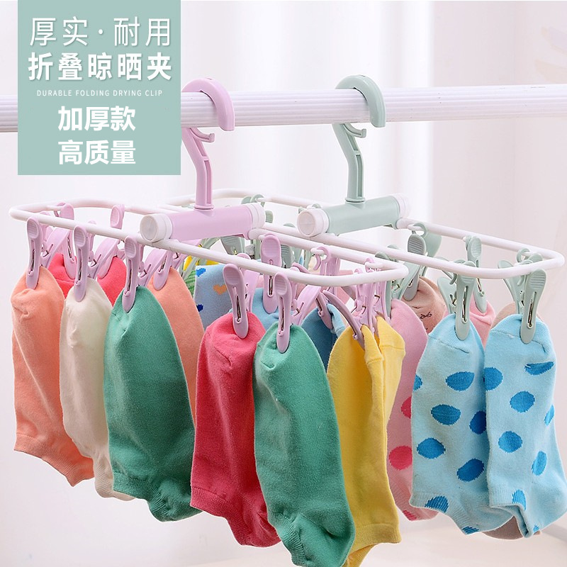 靴下や下着を乾燥させるための12クリップ折りたたみハンガー、多機能クリップ収納衣類ラック、学生寮クリップ下着ラック