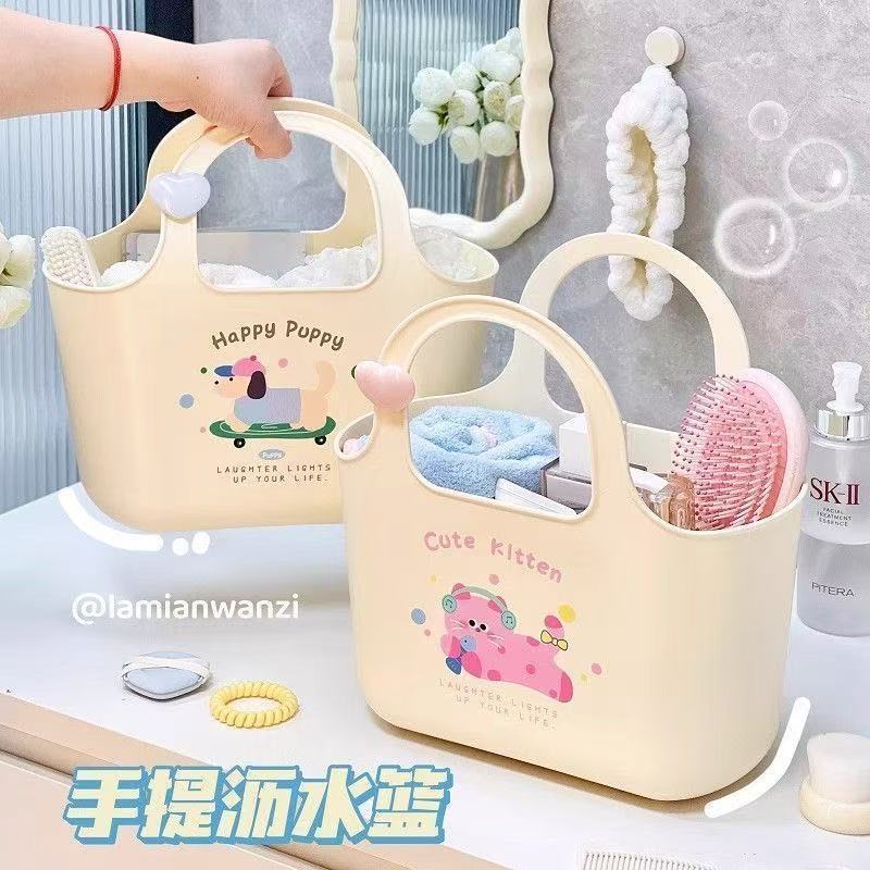 漫画ポータブルバスケット学生寮バスルーム収納バスケット入浴ポータブル化粧品とスキンケア製品排水収納バスケット