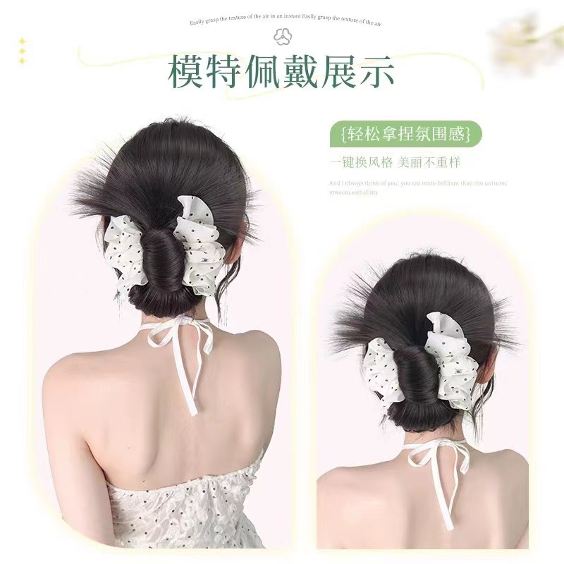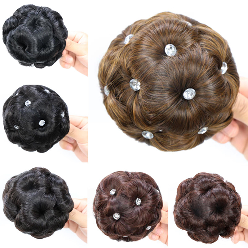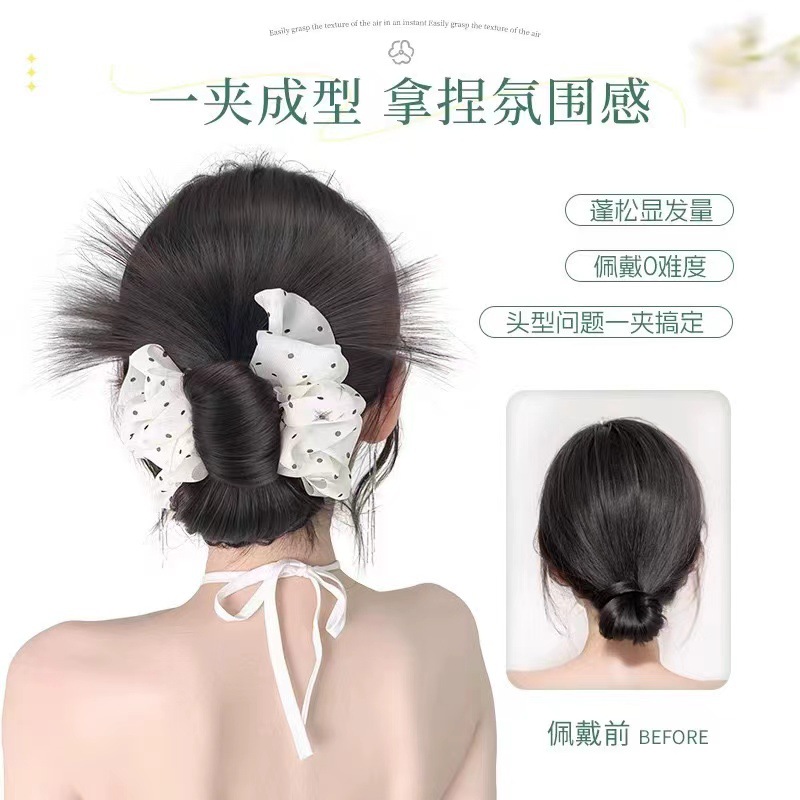 かつらの団子の髪の輪の女性の怠け者の半団子のつぼみの頭のつかみはふわふわしています。