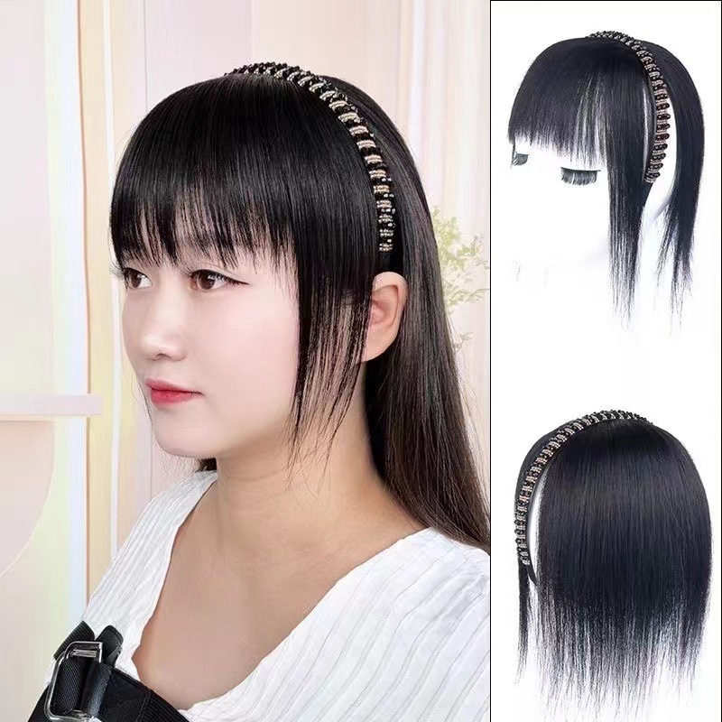 假发刘海水钻发箍一片式假发片直发空气刘海遮盖白发头顶补发片女