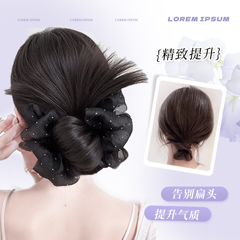 ネットの紗の低い団子の頭のかつらは女性を挟んで怠惰な感じがします。