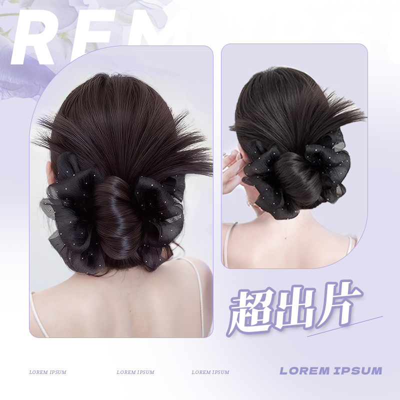 女性用羽毛ヘアウィッグ、ボールヘア、新しいローヘアスタイル、ふわふわ後頭部ウィッグリングコレクション