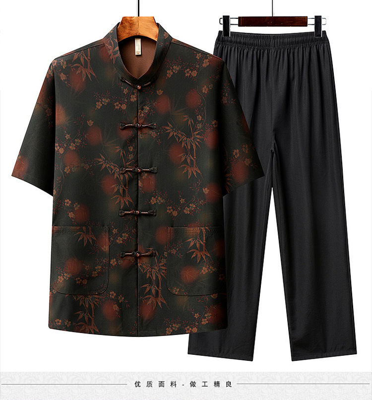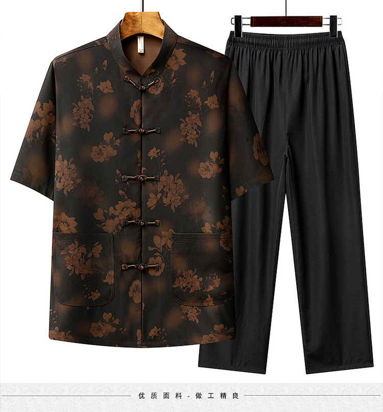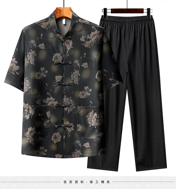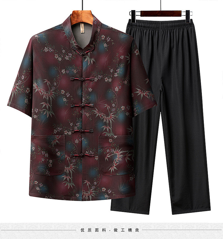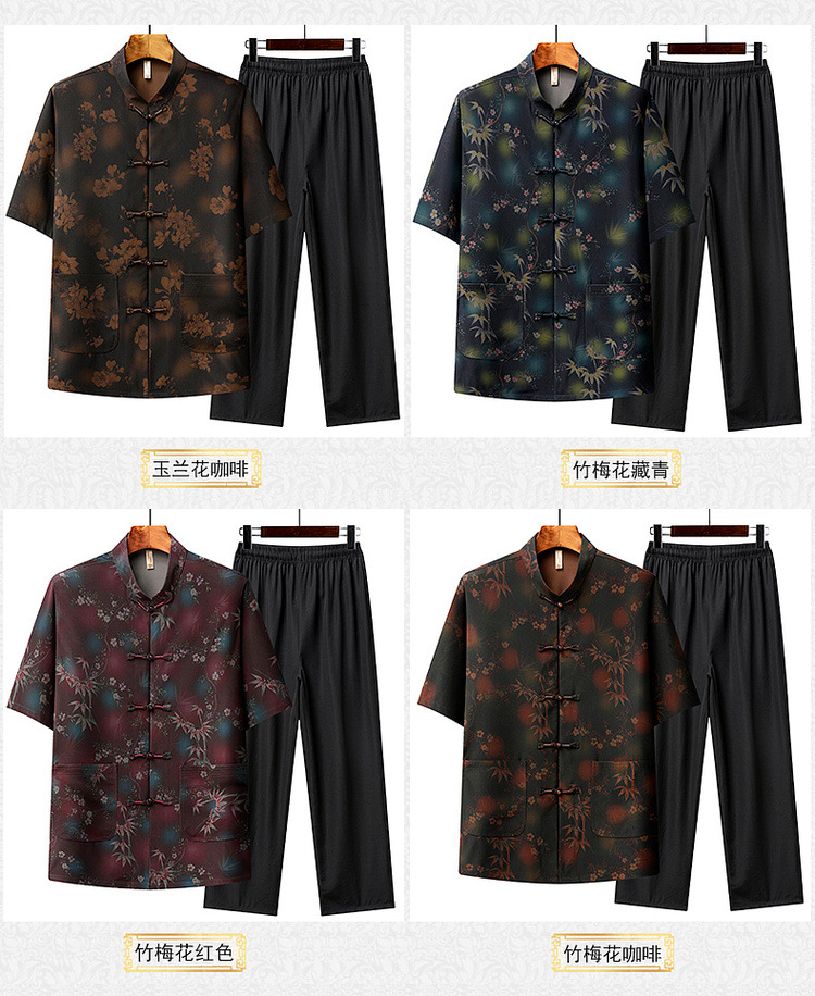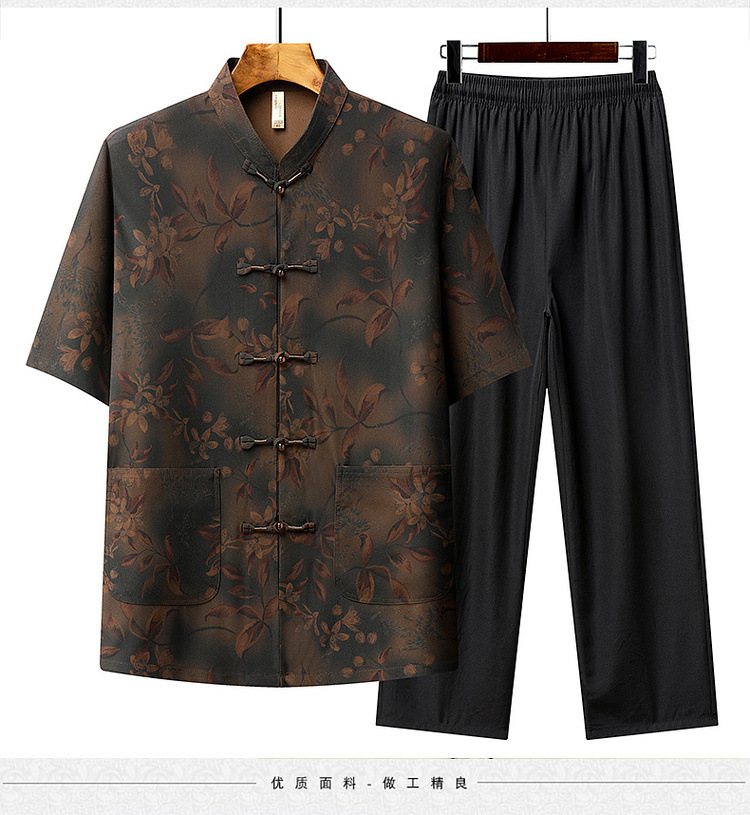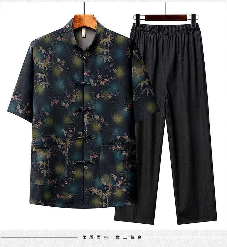 中高年薄型漢服中国風カジュアル半袖シャツスタンドカラータングスーツ夏メンズ半袖スーツお父さん