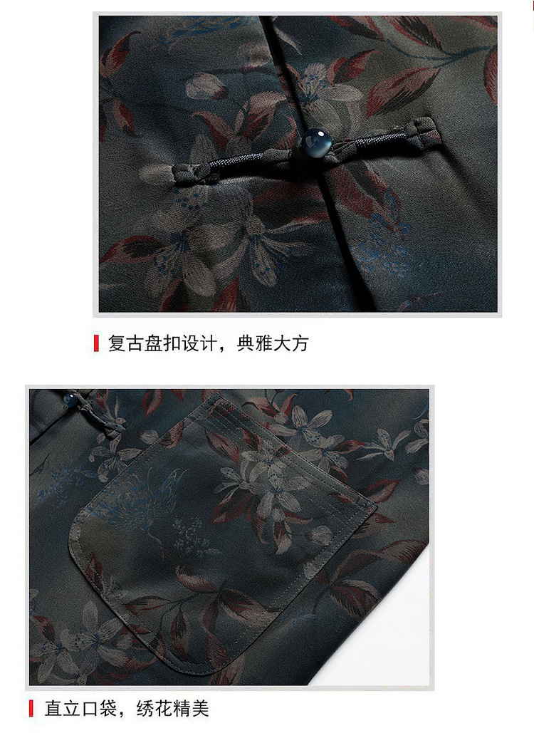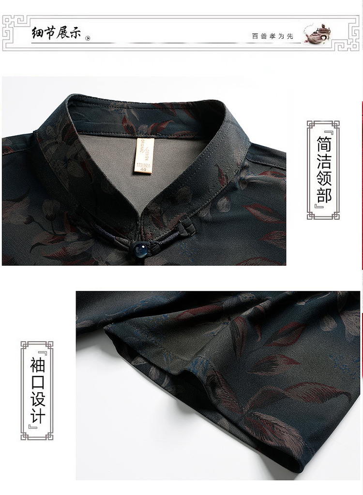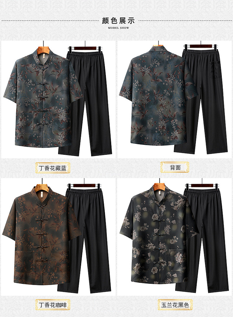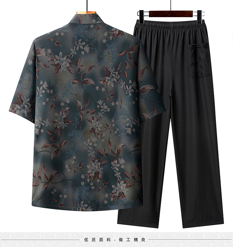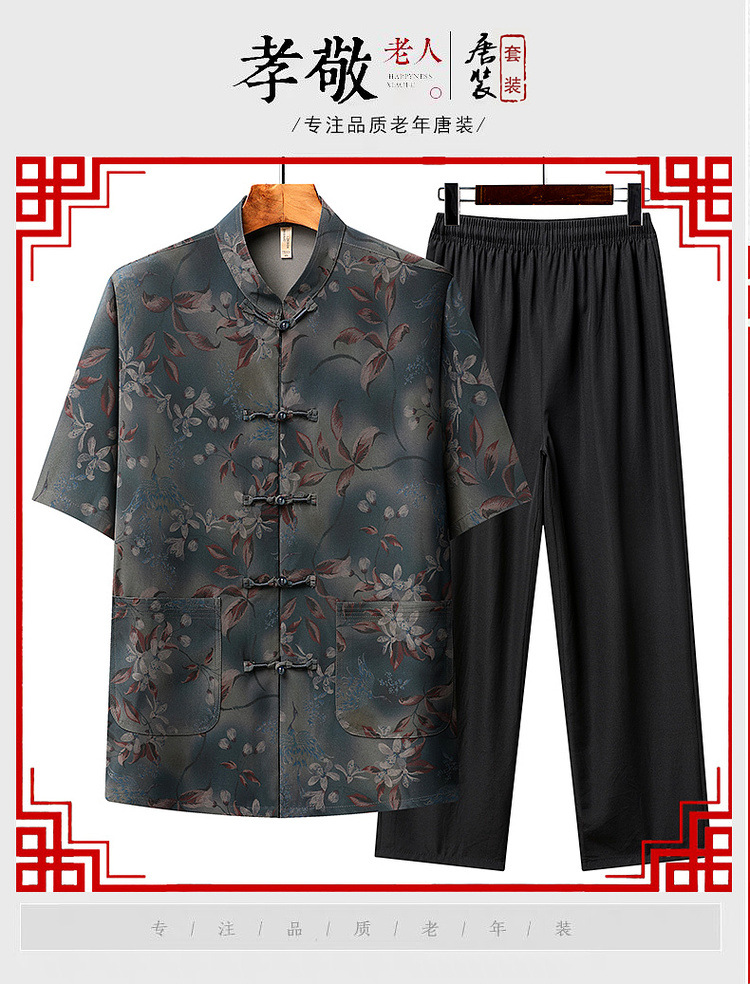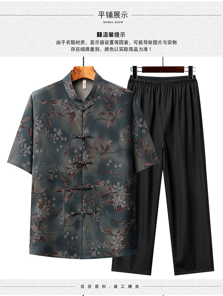 中高年薄型漢服中国風カジュアル半袖シャツスタンドカラータングスーツ夏メンズ半袖スーツお父さん