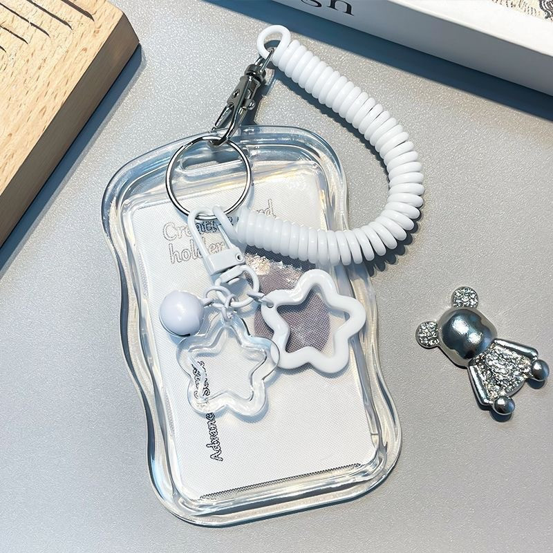 ウェーブピュア透明カードホルダー,ウェーブピュア透明カードホルダー+ホワイトスプリングリング,ウェーブピュア透明カードホルダー + ホワイトスプリングリング + ホワイトサークルスターペンダント