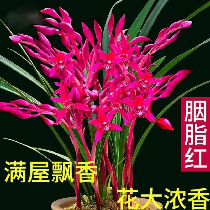 貴重な蘭の苗鉢植えレッドダブルハピネス屋内花四季蘭の香りの強い緑の植物
