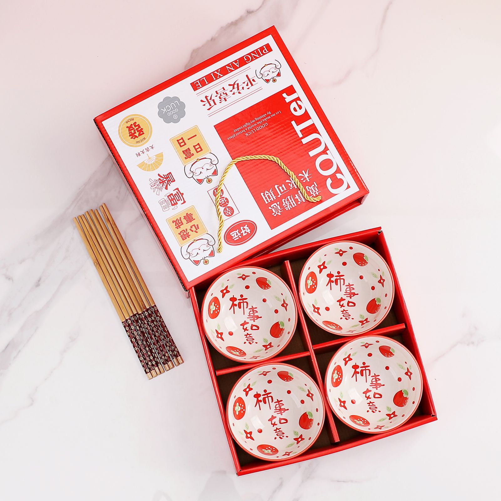 平安と喜びの陶器ボウル 陶器食器セット 角ボウル 箸皿 会社イベント 共同購入 年次総会記念品