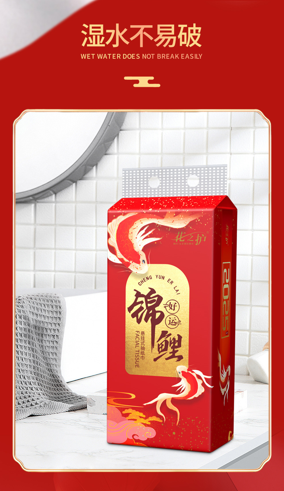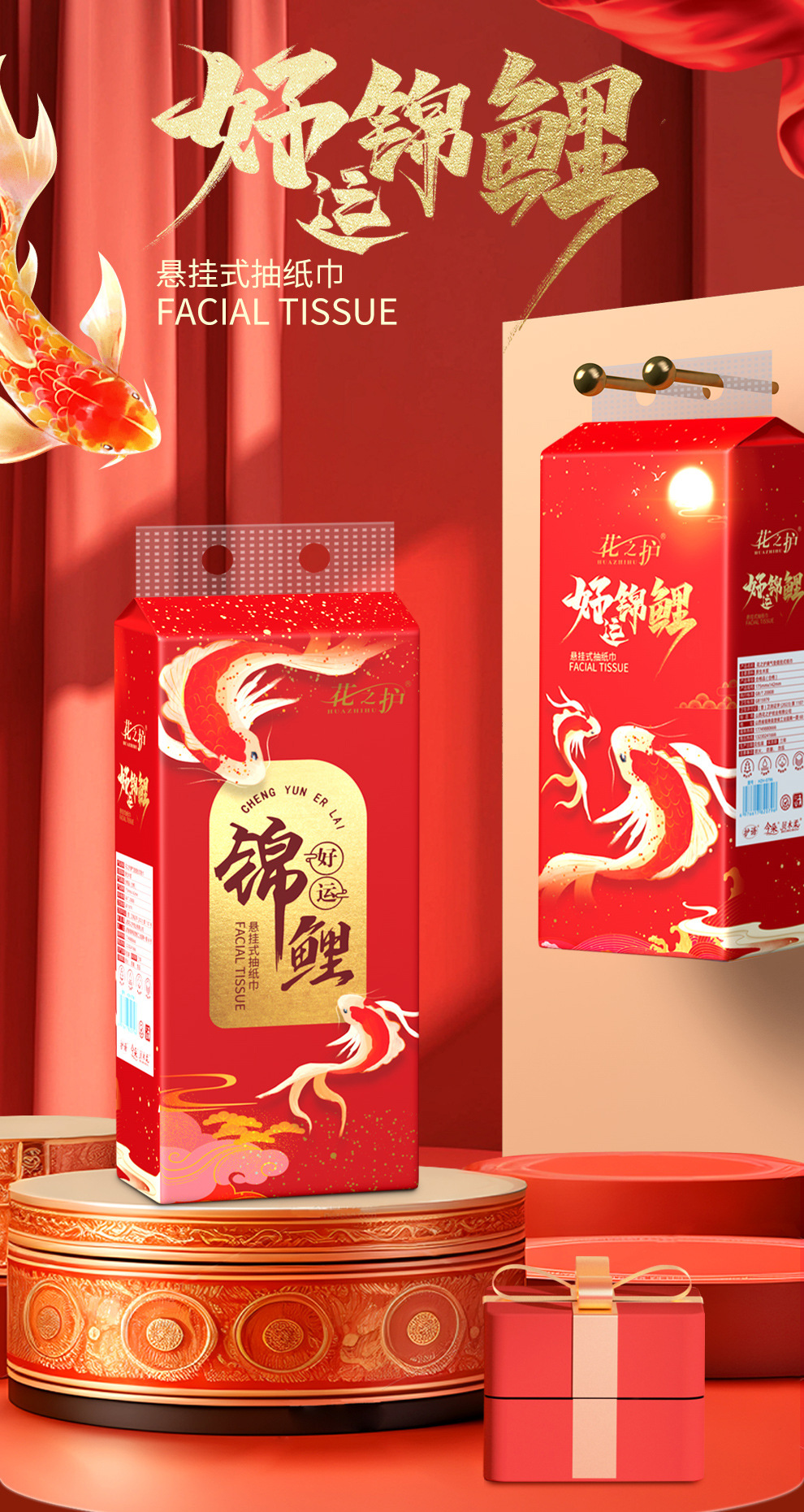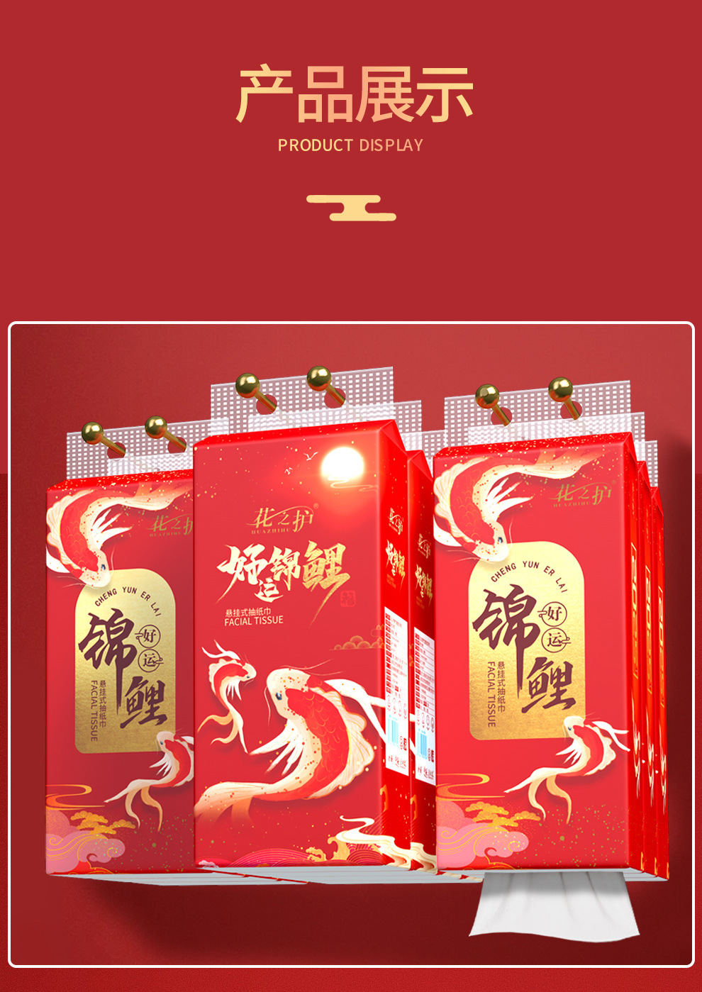 20250枚入りの幸運の鯉の箱、吊り下げ用ティッシュペーパー10枚、ハンドタオル、ナプキン、フック、その他