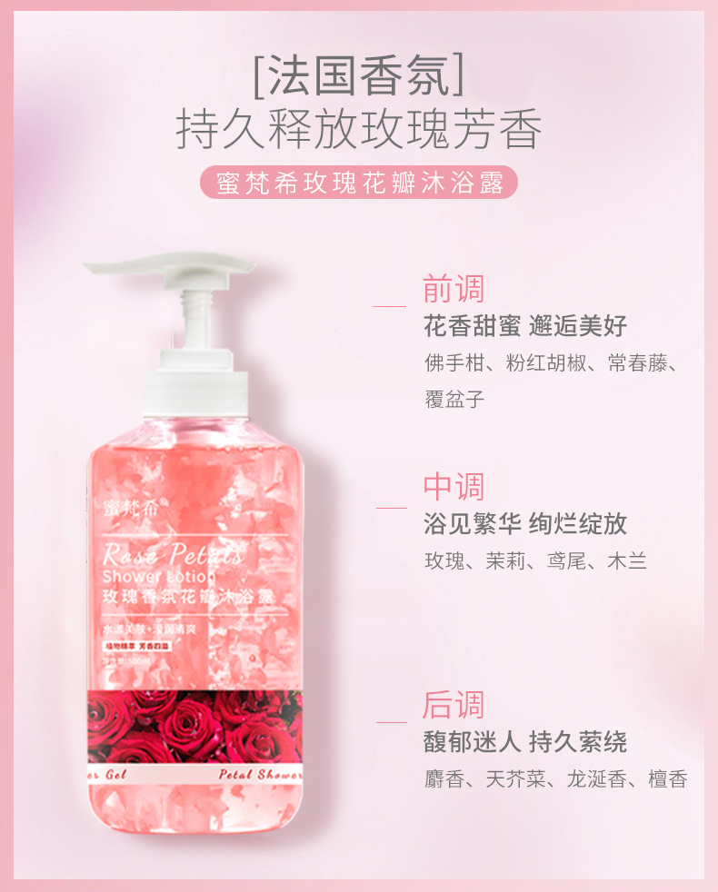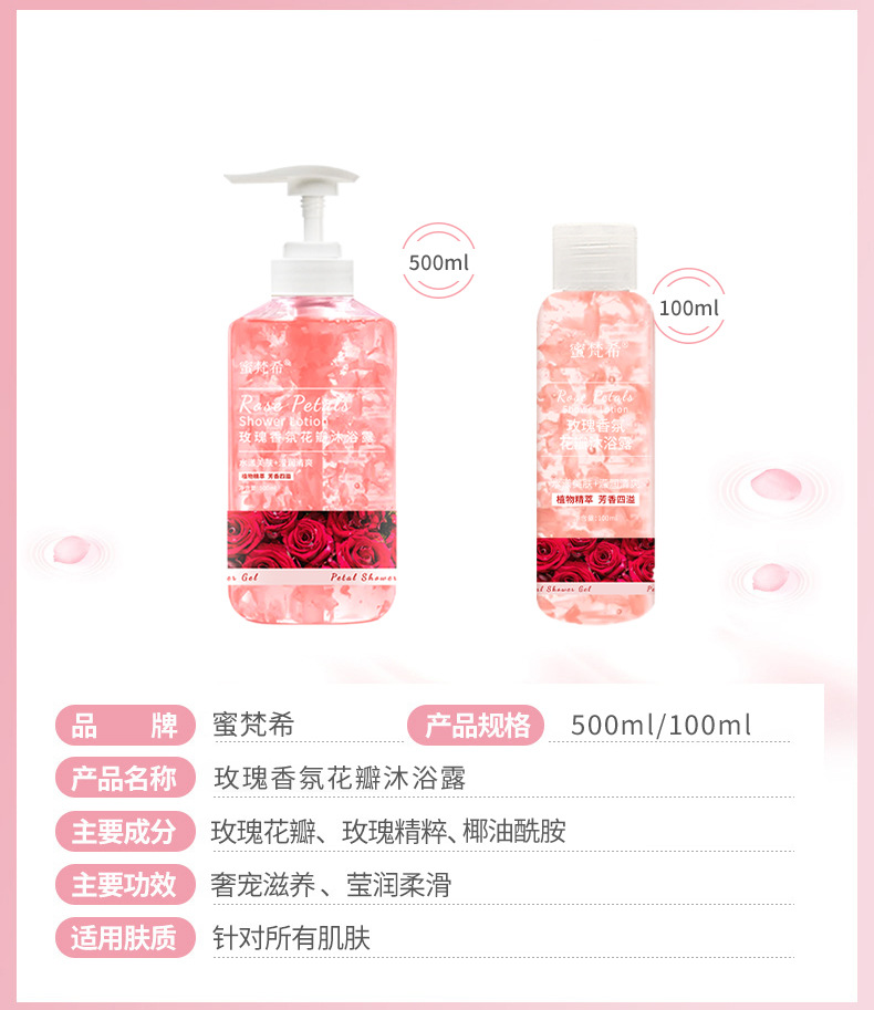 保湿オイルコントロールローズペタルクレンジングクロスボーダーホットセール香水タイプの香りのよいシャワージェル、香りが長続き