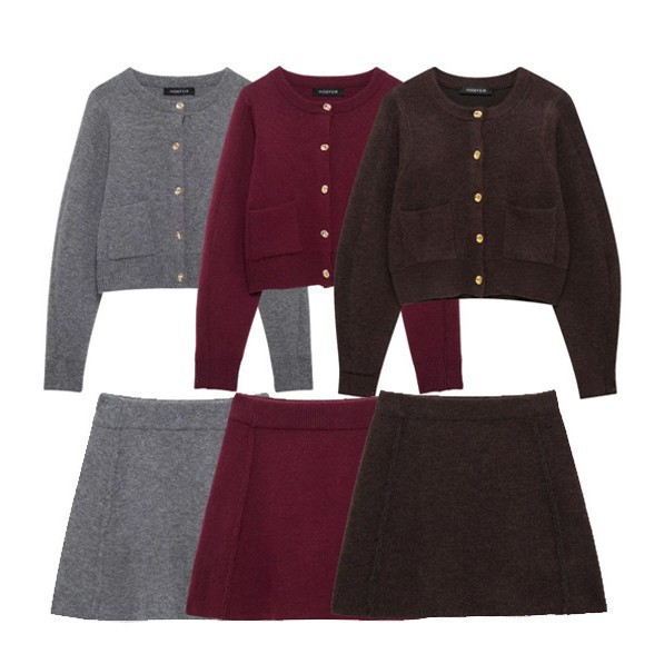 欧米のクロスボーダー婦人服卸売女性式丸首長袖ニットコート高腰弾力ミニスカートカジュアルスーツ