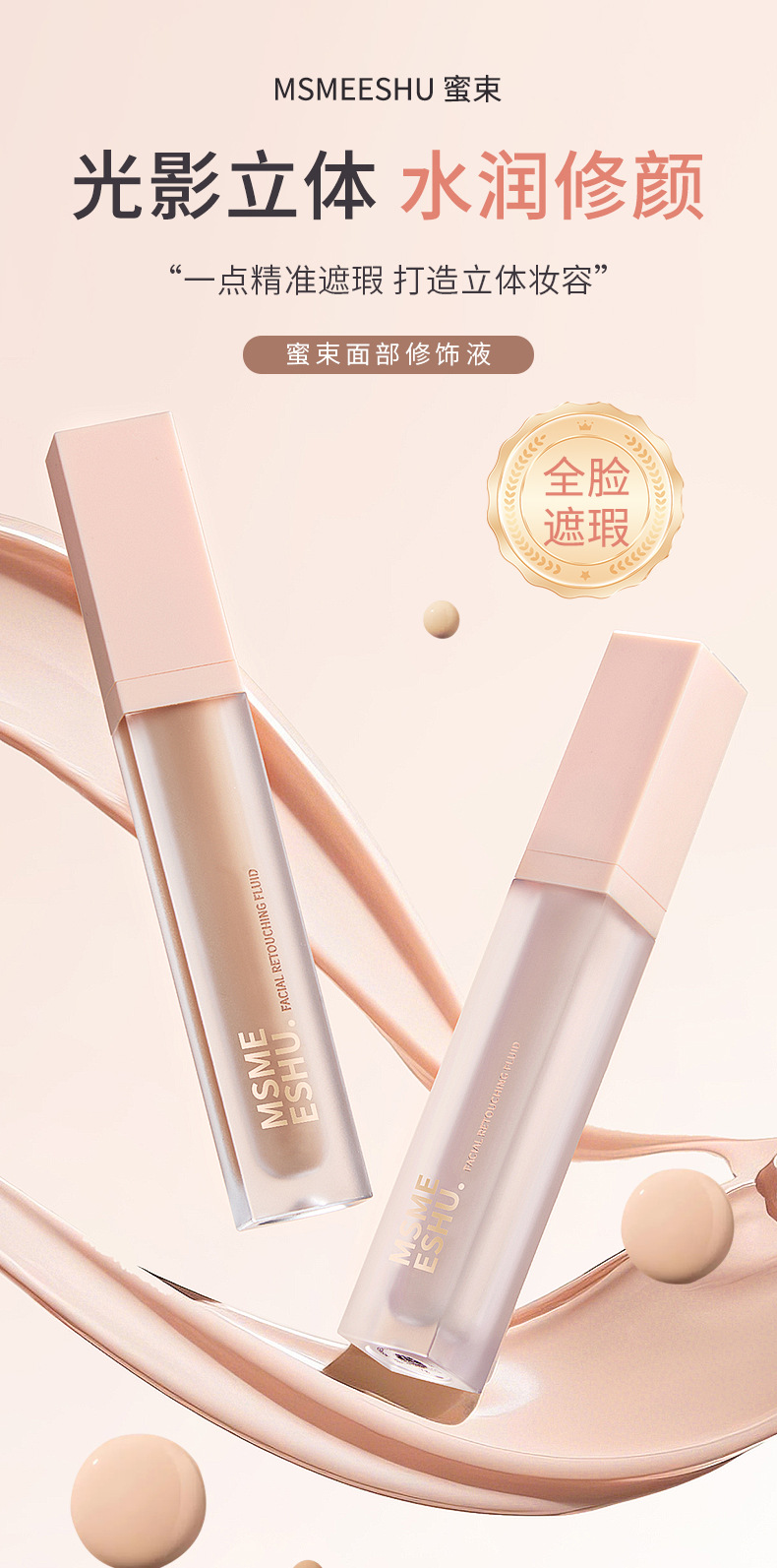 蜜束面部修饰液自然提亮立体修饰橘色转色液遮瑕不易卡粉遮瑕液