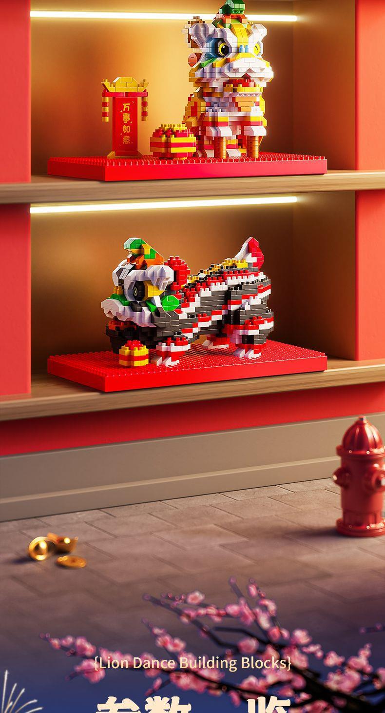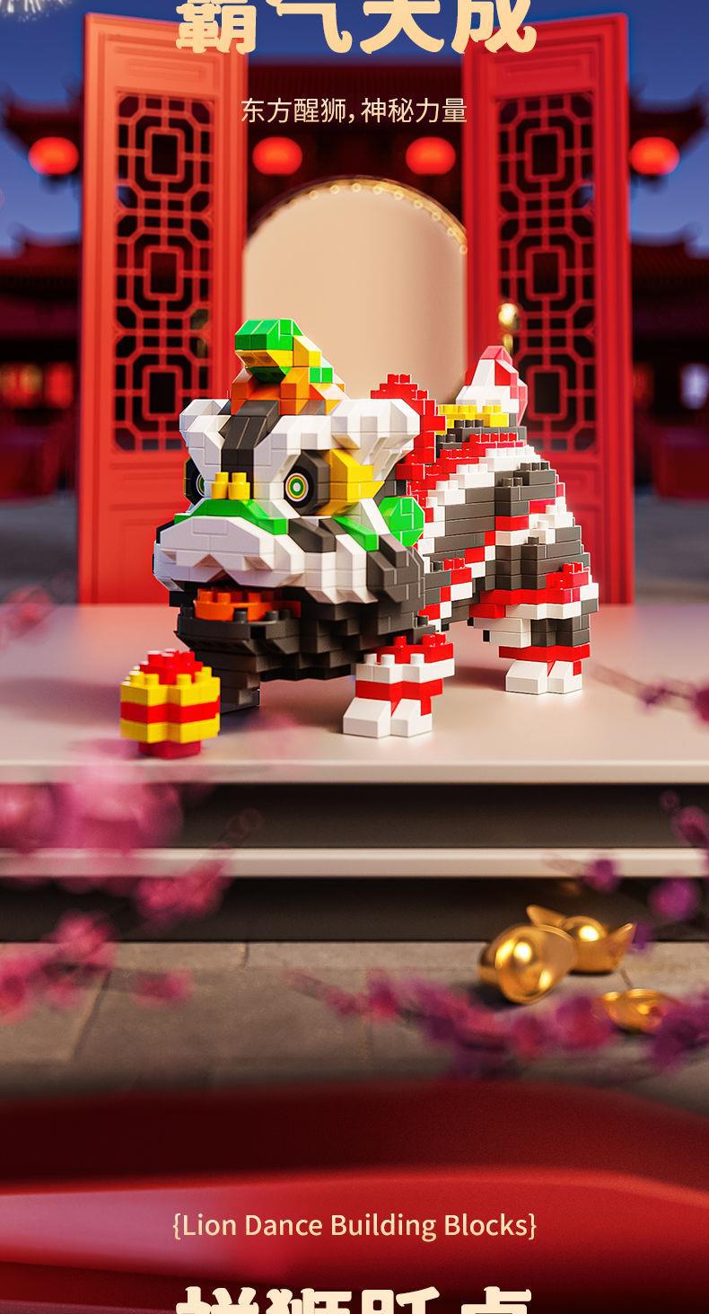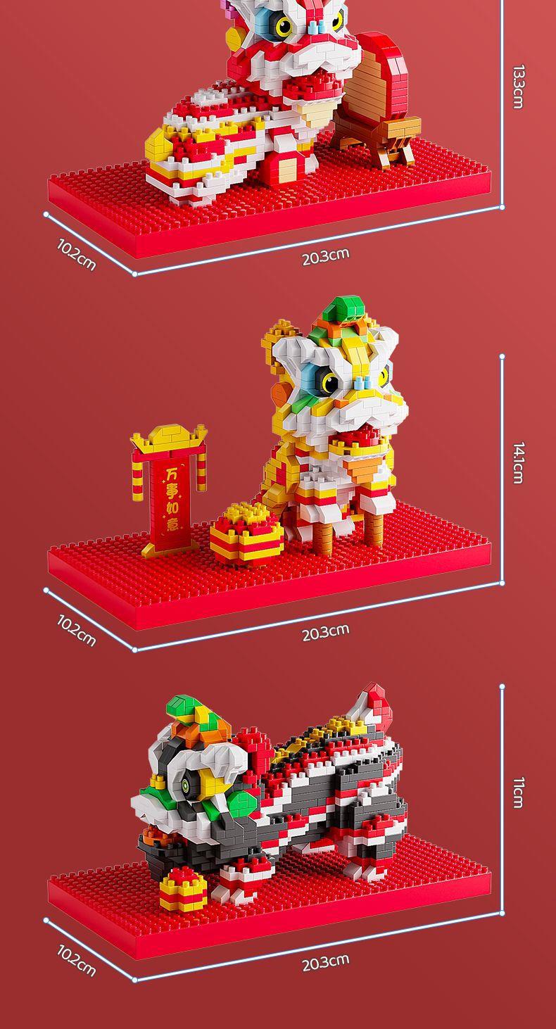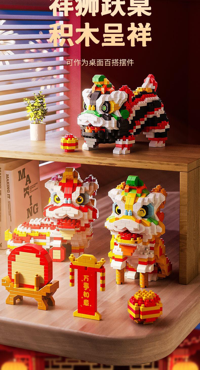 【卸売と配送】新年と春節の獅子舞、レゴと互換性のある中国風のビルディングブロック、組み立ておもちゃ、装飾品、新年の贈り物