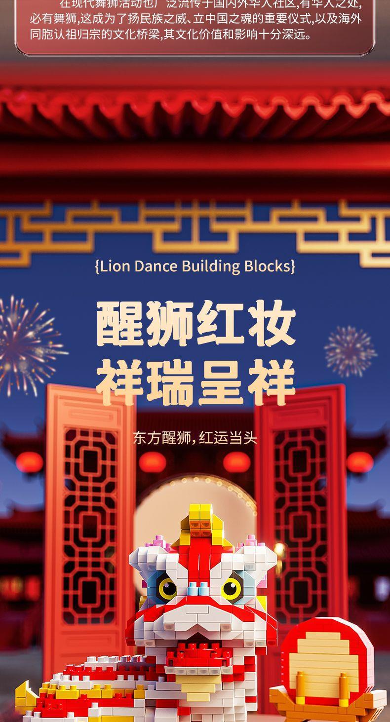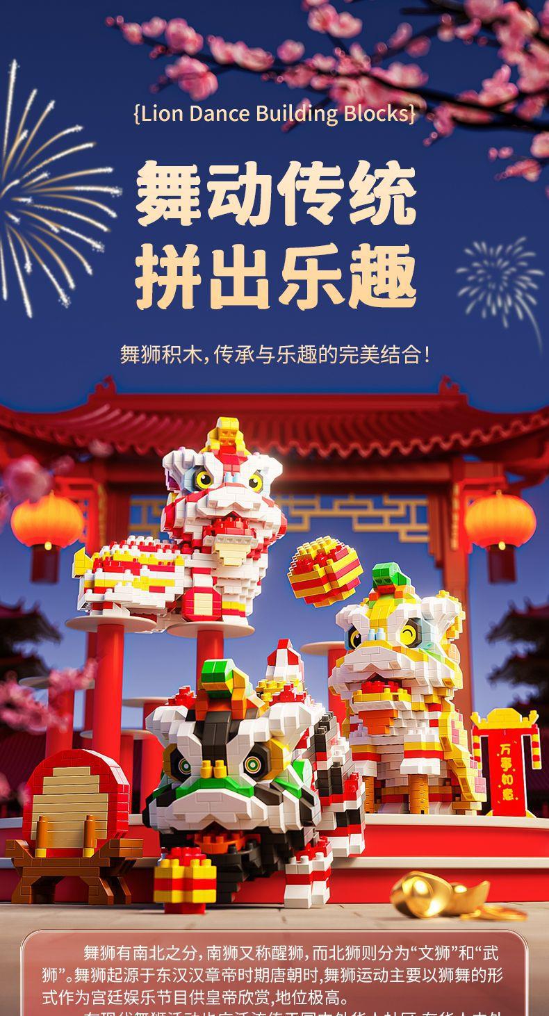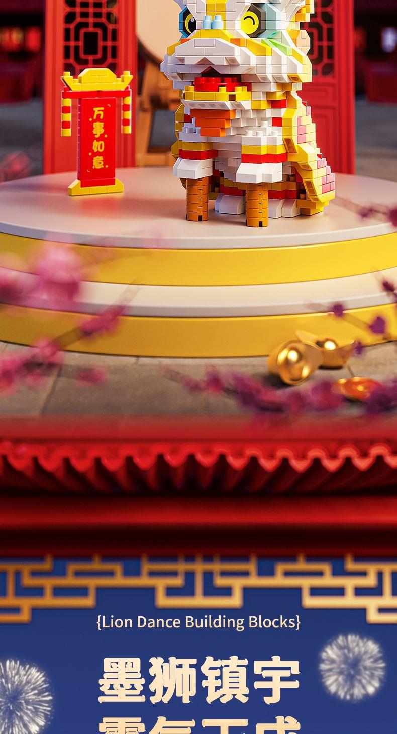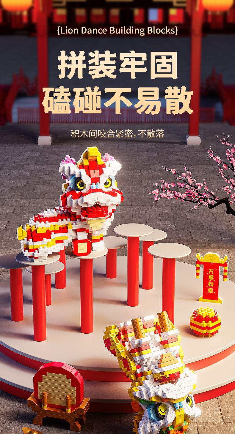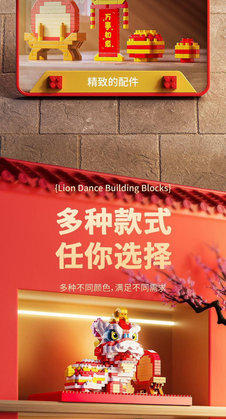 【卸売と配送】新年と春節の獅子舞、レゴと互換性のある中国風のビルディングブロック、組み立ておもちゃ、装飾品、新年の贈り物