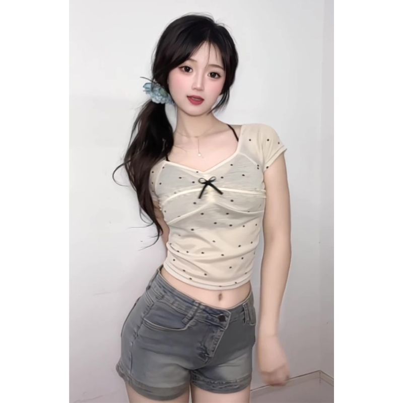 【20枚で送料無料】Pure Desire 薄手水玉セクシー半袖Tシャツ夏ホットガールスリムショートユニークトップ