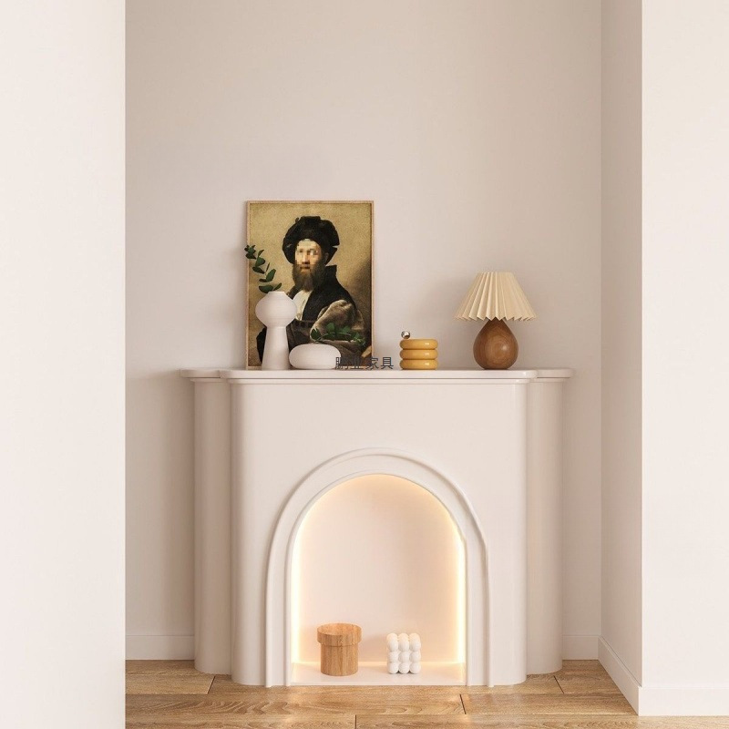 奶油风展示柜民宿壁炉柜客厅装饰柜法式发光置物柜北欧白色室内