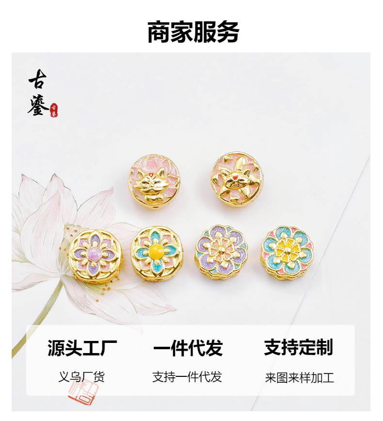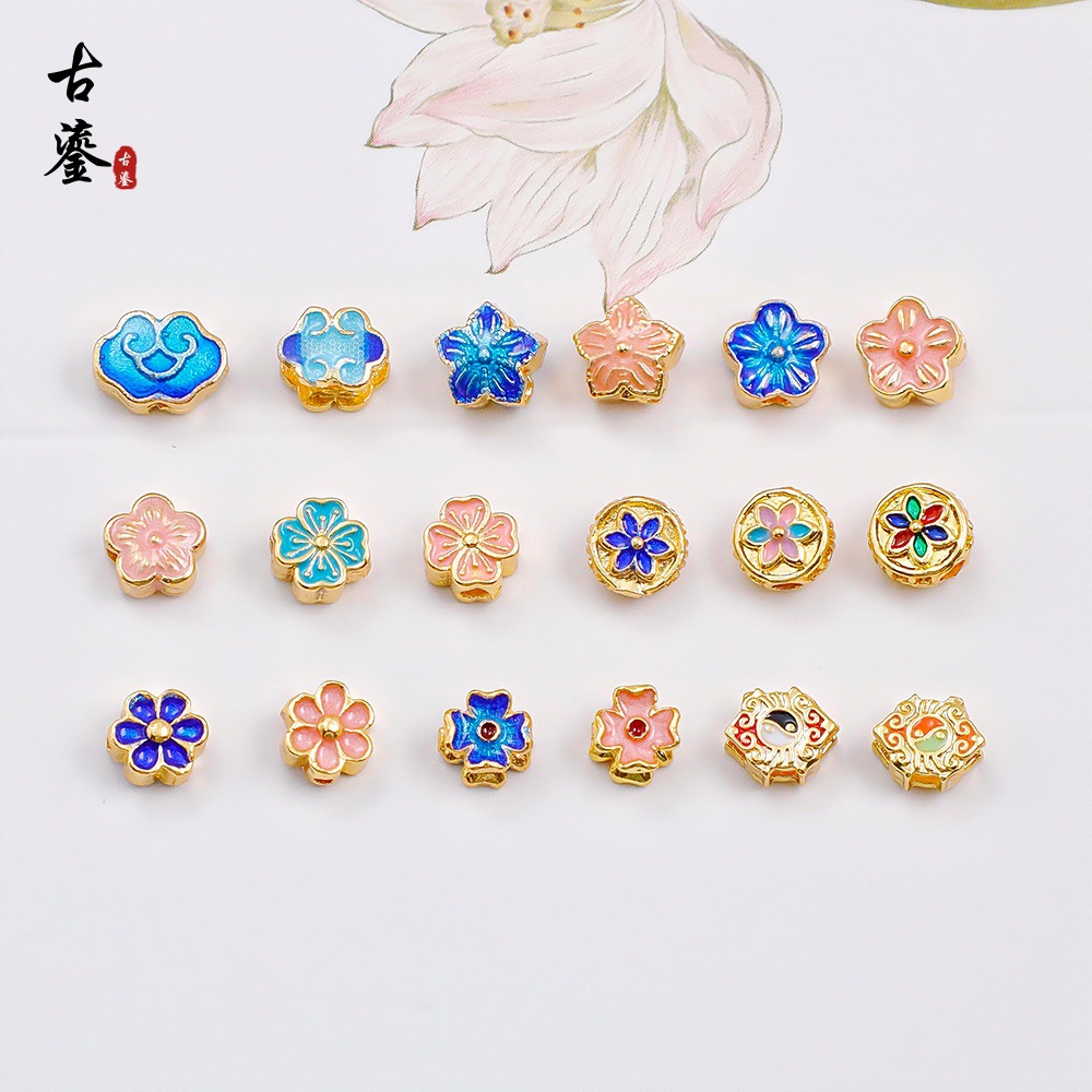 景泰藍滴油小隔珠スペーサー古法焼藍小部品DIYブレスレットネックレス百合隔珠アクセサリー