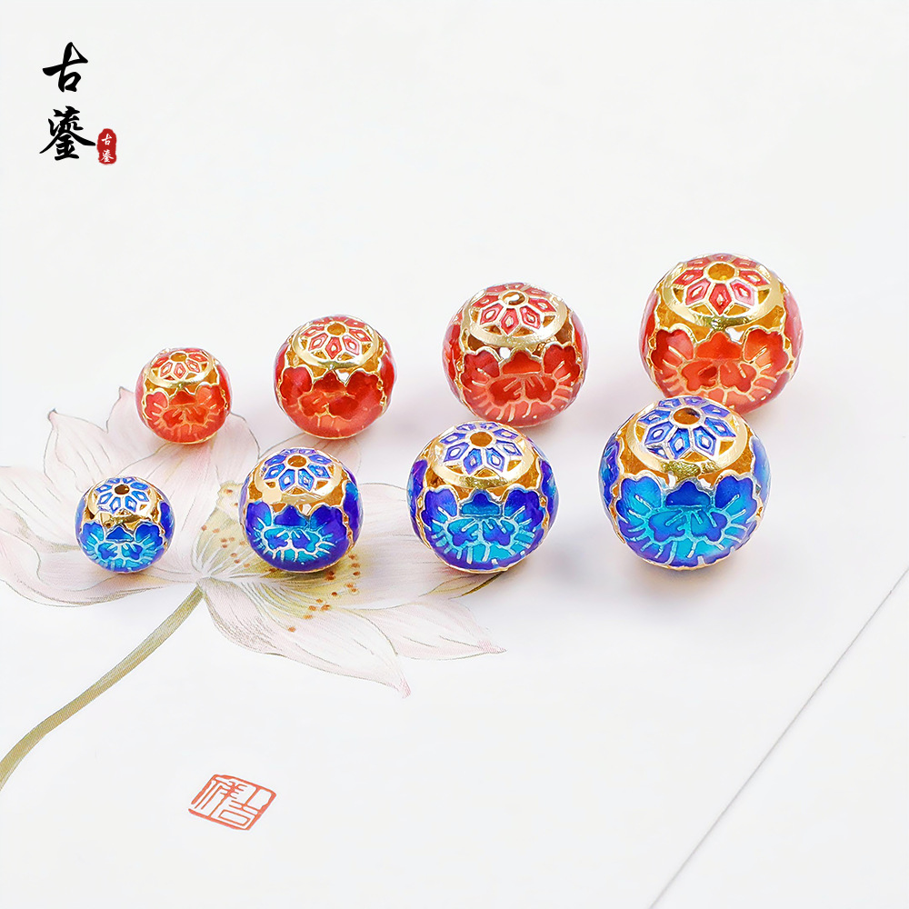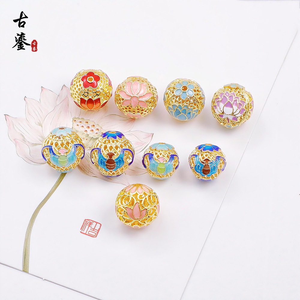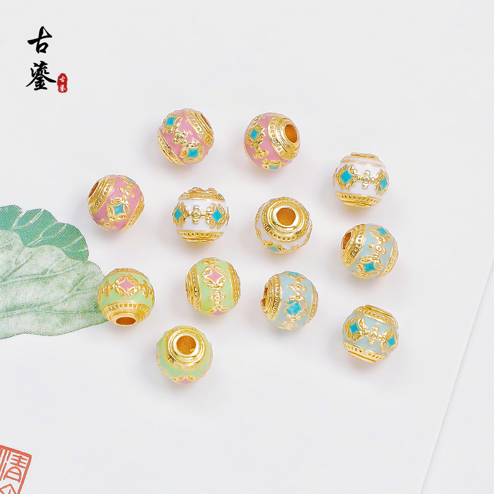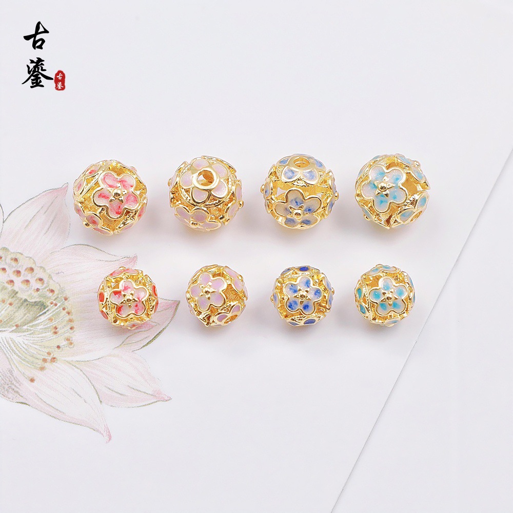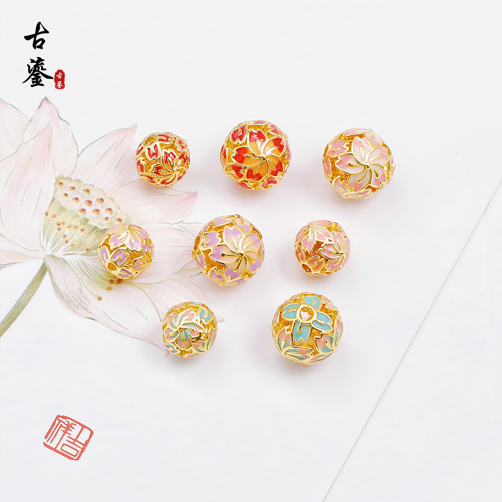 新作景泰藍丸玉桃花運珠DIYブレスレットセーターチェーン散珠仏珠透かし玉