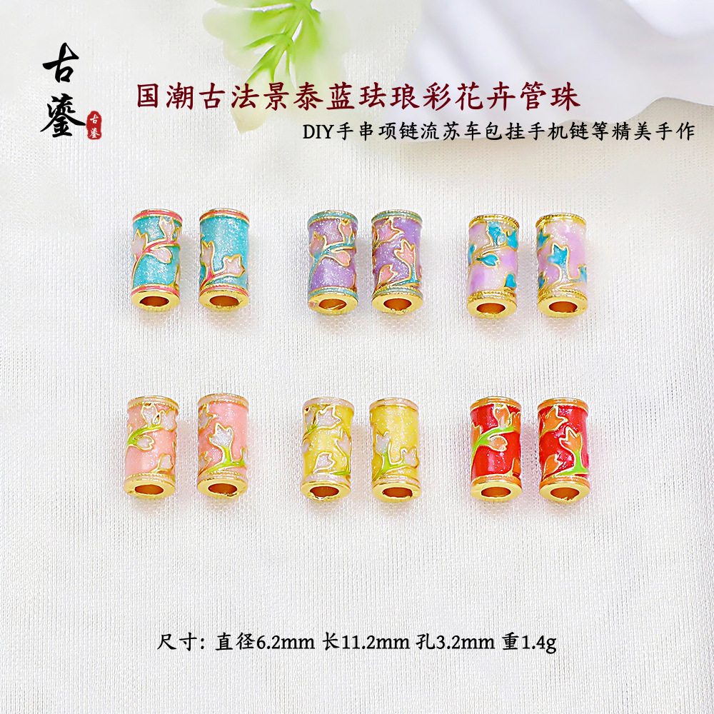 景泰蓝长筒花卉管珠烧蓝珐琅隔珠古风diy手链项链串珠饰品配件