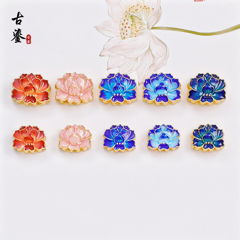 景泰藍琺瑯焼藍多孔蓮花背雲手串隔珠DIYネックレスブレスレット滴油装飾中国風