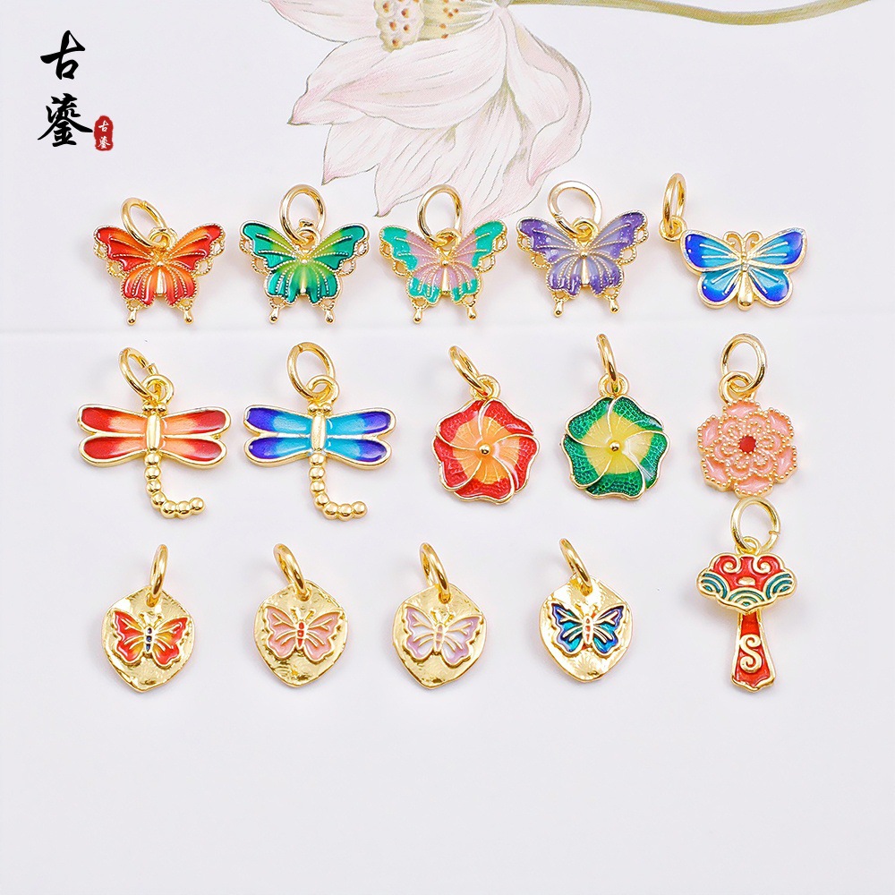 古代焼青七宝蝶とトンボペンダント片面 DIY 手作りブレスレットブレスレットペンダントジュエリーアクセサリー