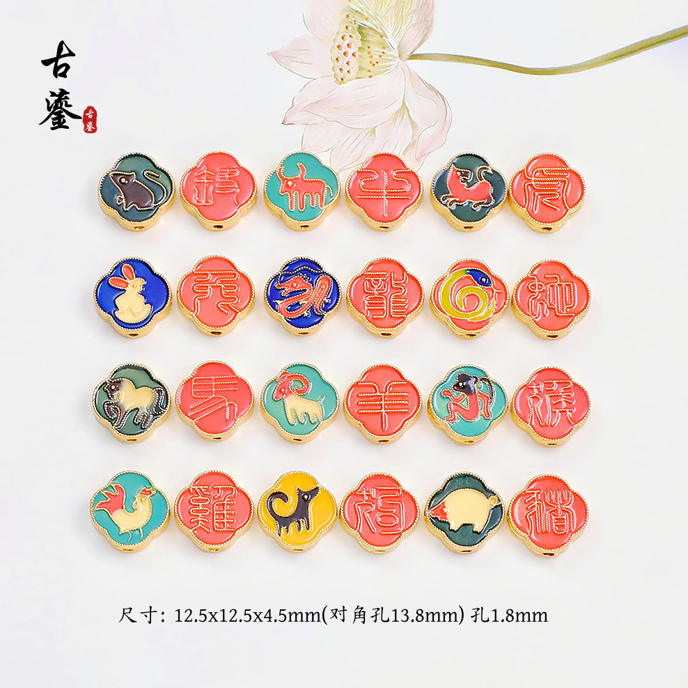 景泰蓝如意四叶草甜美隔珠滴油烧蓝珐琅彩散珠diy手串毛衣链配件